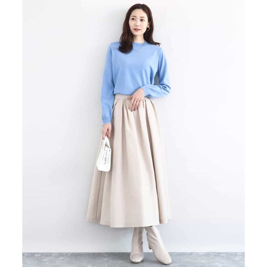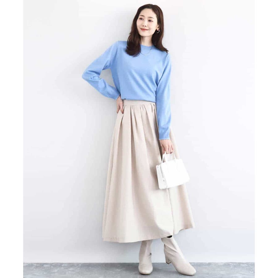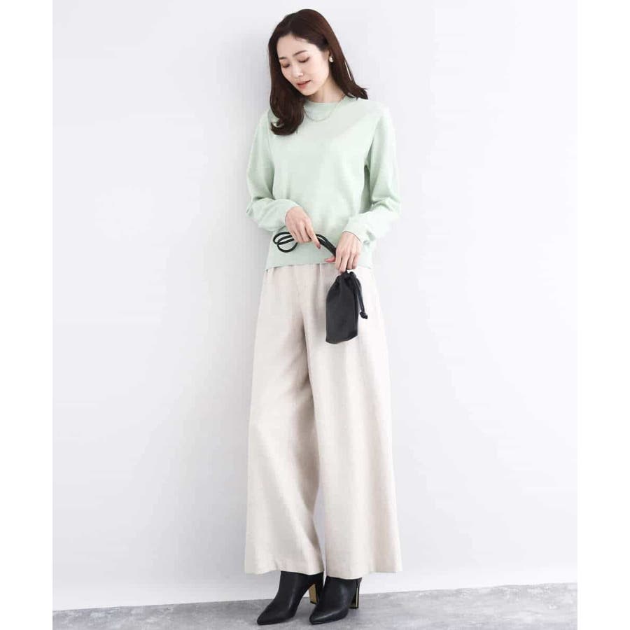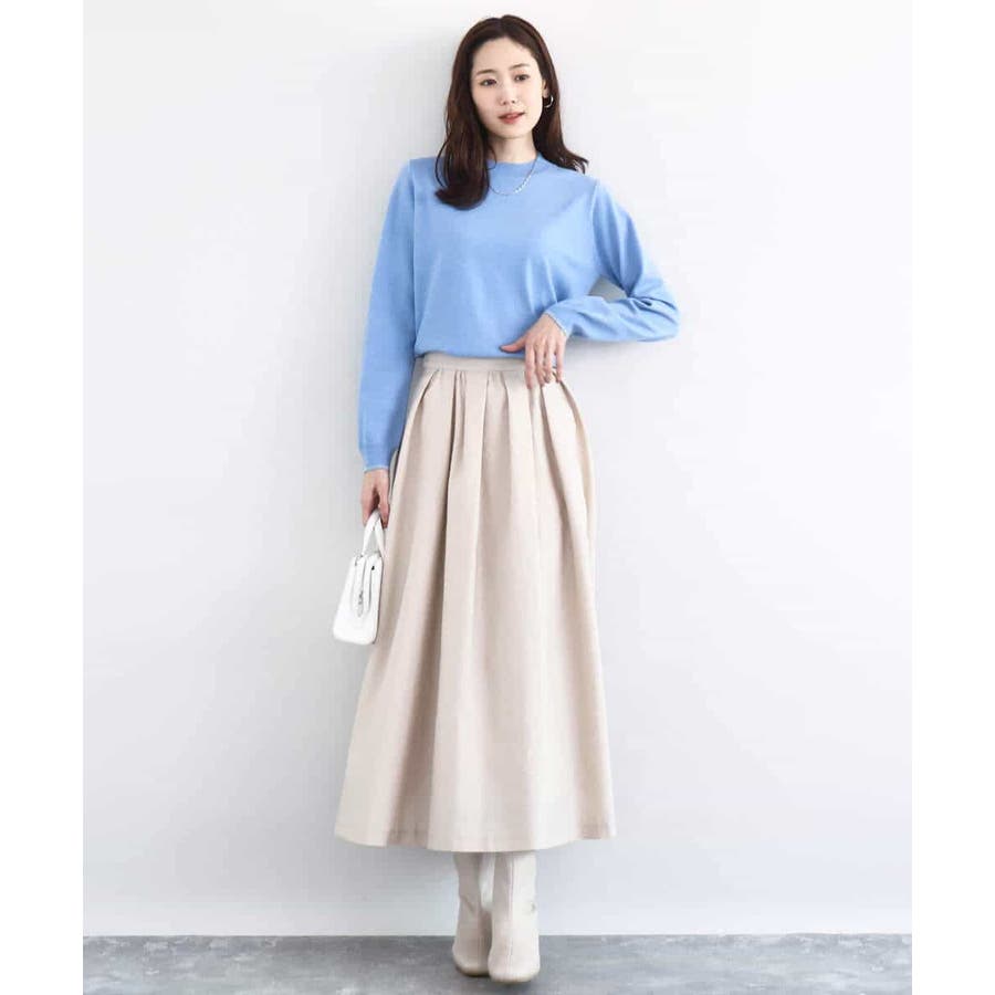 厚手すぎず薄手すぎない肉感はコートの中に羽織ってももたつかずにすっきりと着こなせます。シンプルなデザインはトレンド関係なく、またウールの入っていないニット素材で長い季節楽しめるのも嬉しい。