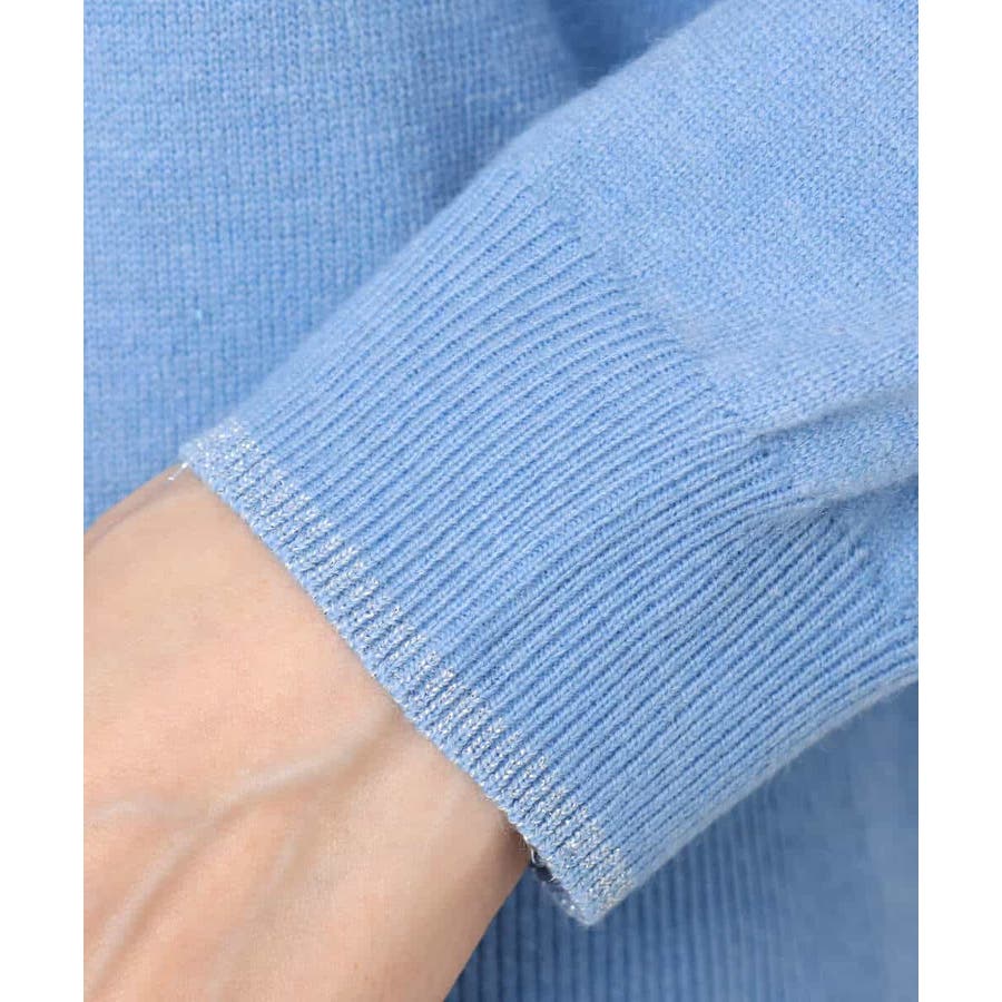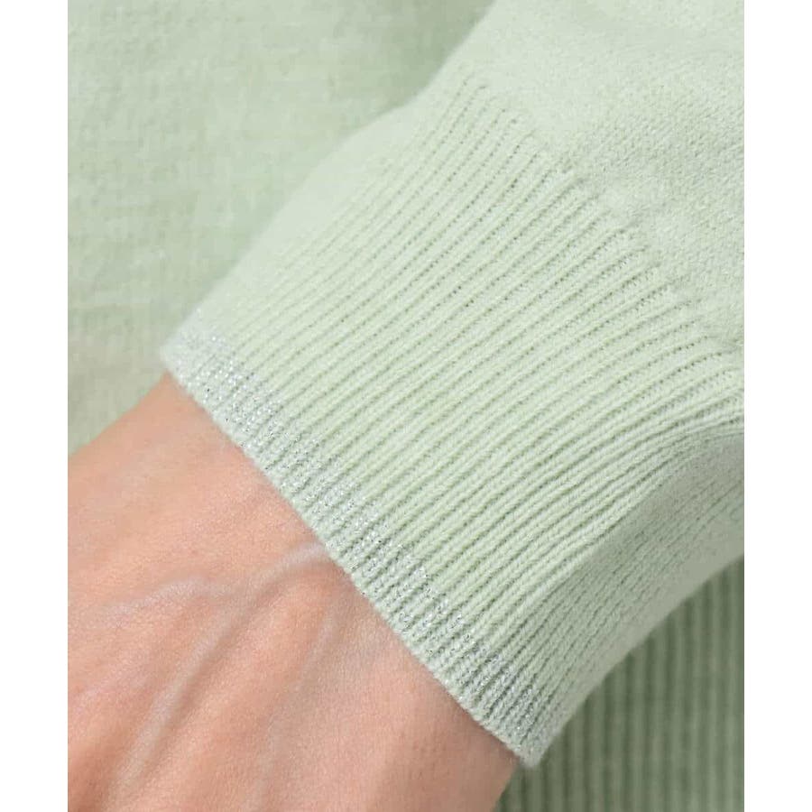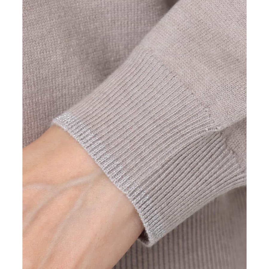 一枚着としても、インナーとしても便利なモックネックのニットプルオーバー。裾と袖口にさりげなくシルバーラメを効かせてポイントに。