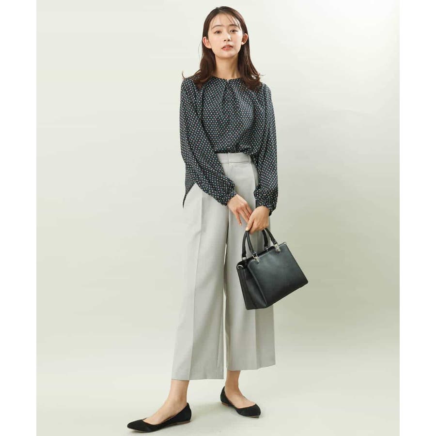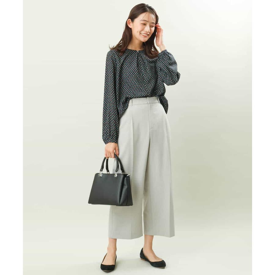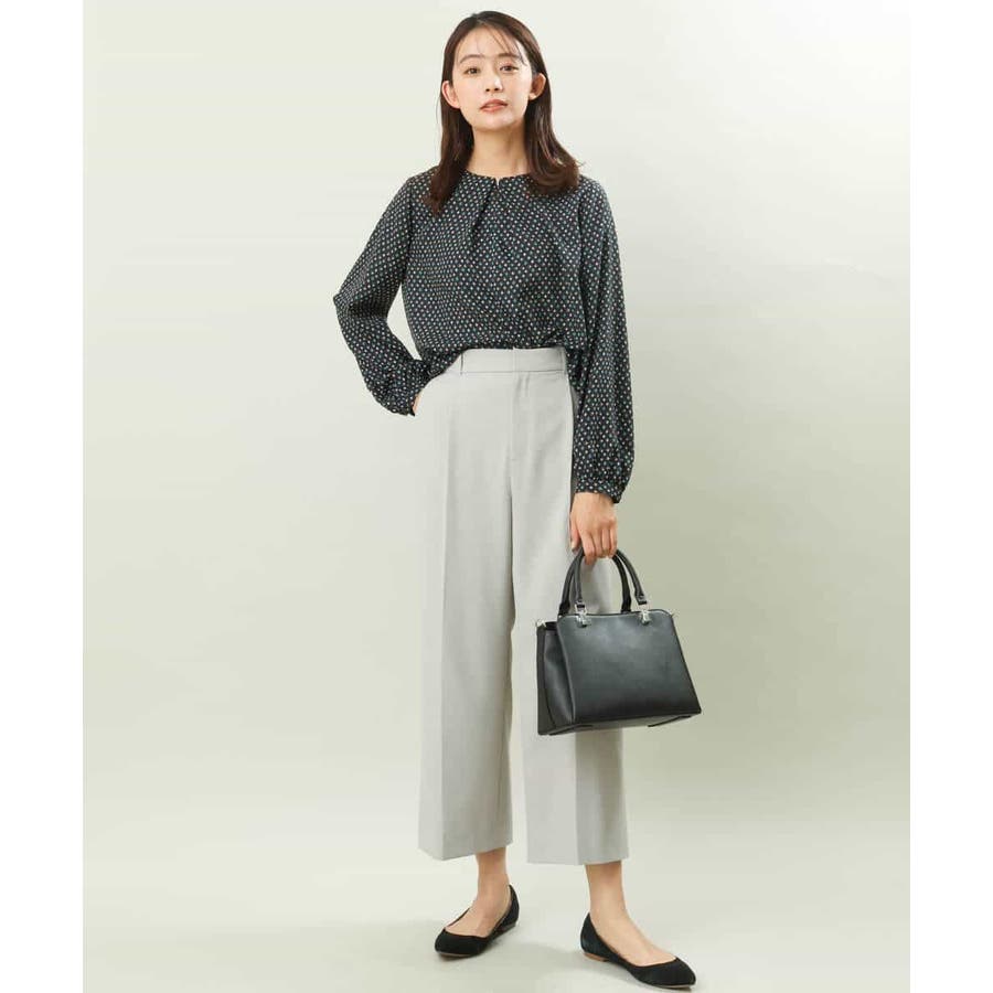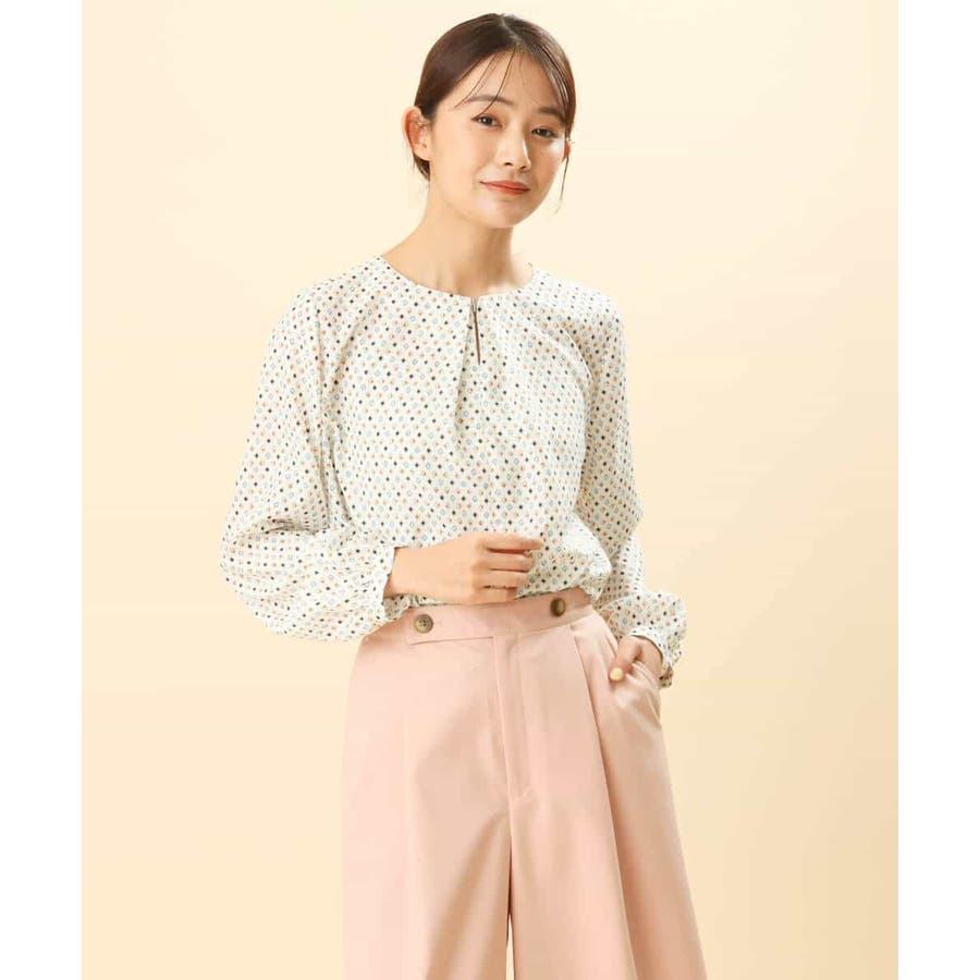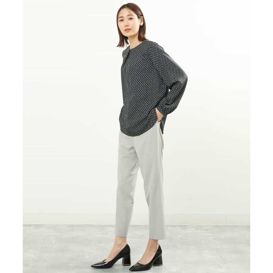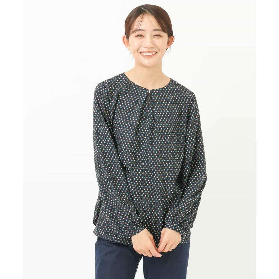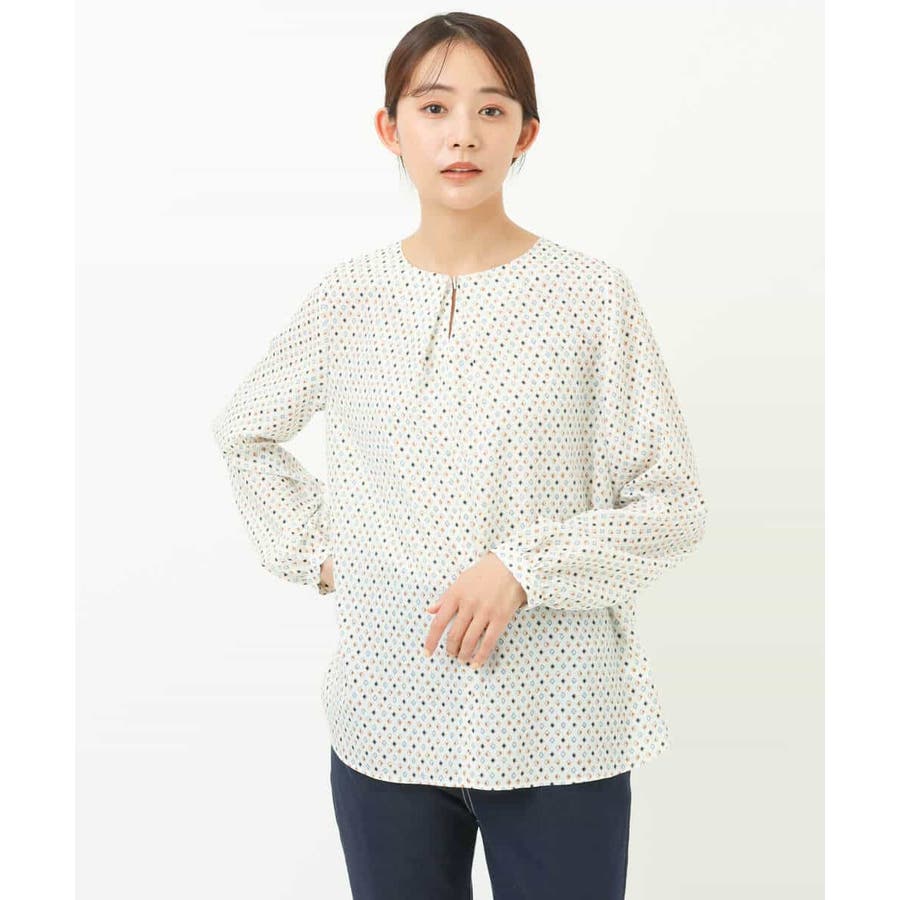 お仕事シーンにもちょうどいいプリントブラウスはシンプルなボトムと合わせても地味になりすぎず上品な華やかさをプラスしてくれます。ジャケットやカーディガンも合わせやすいシルエットはシーズン問わず活躍してくれそう。