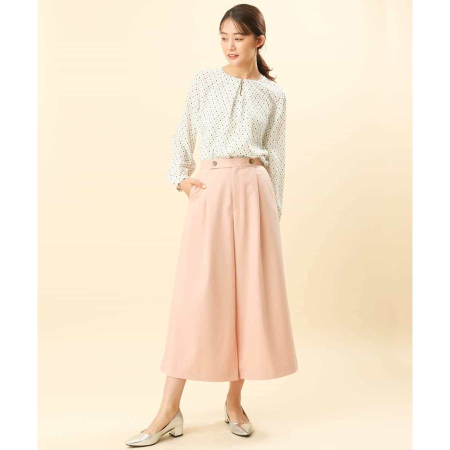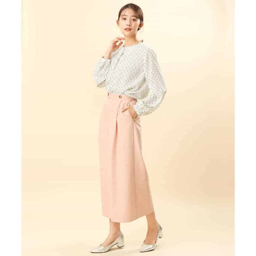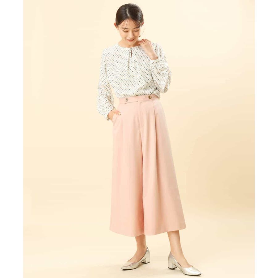 ほどよくきちんと感のある、着用シーンを選ばず着られるデザインブラウスです。首元のホックデザインが映え、スーツインなどにもおすすめです。しわになりにくく、洗濯機で洗えるのも◎。ヘビロテできそうな一枚です。