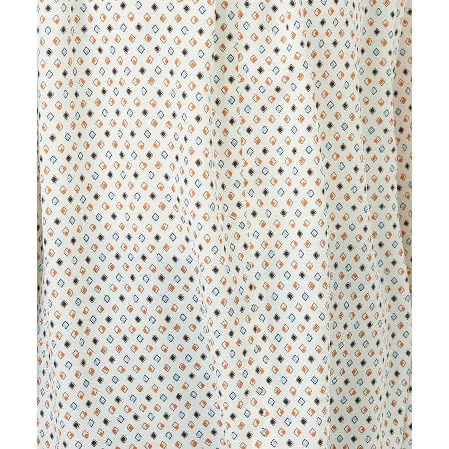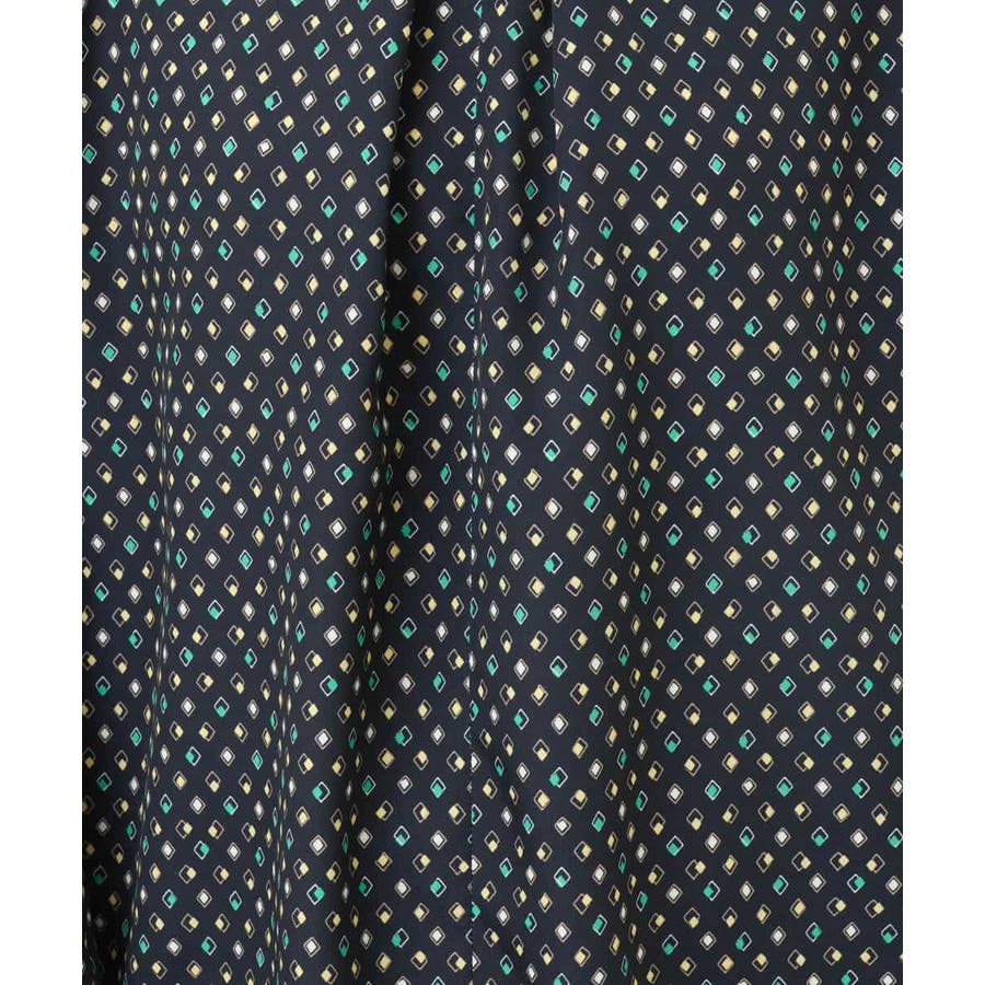 てろっとした落ち感があり、透けにくい。光沢がありきれい見え。さらっとした肌当たりで着心地◎。ダイヤ柄モチーフの細かい幾何柄に春カラーの差し色がいいアクセント。