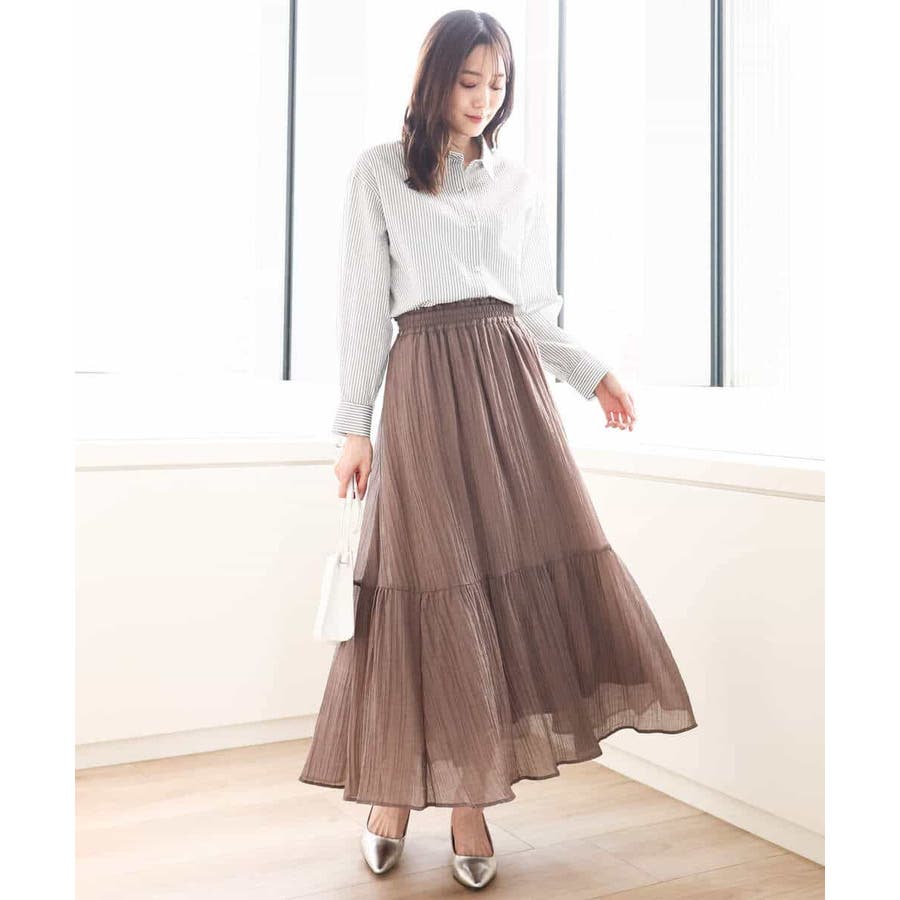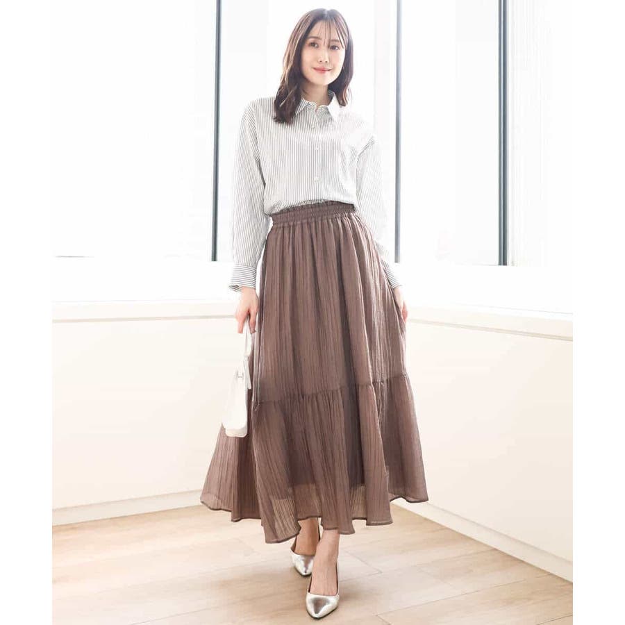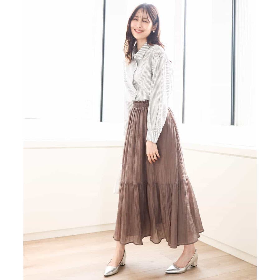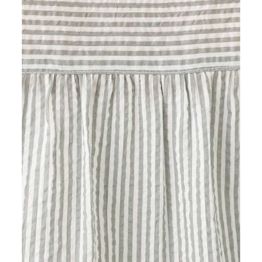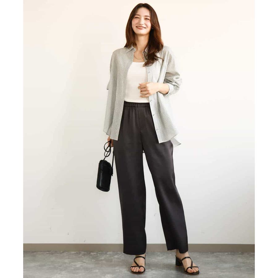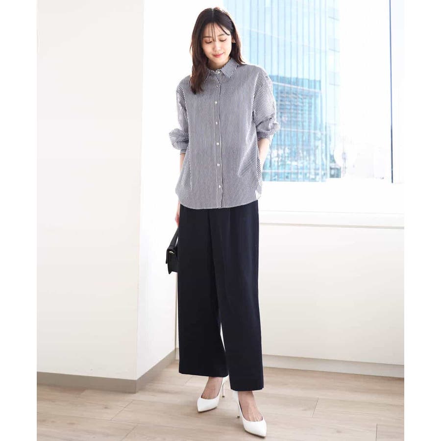 タンクトップやTシャツの上にさっと気軽に羽織っても素敵な着こなしに。細いストライプ柄はアクセントになりながらコーデの邪魔をしないので、着回し力が高いのも魅力。羽織りとしても一枚着としてもシーズンレスで重宝するアイテムです。
