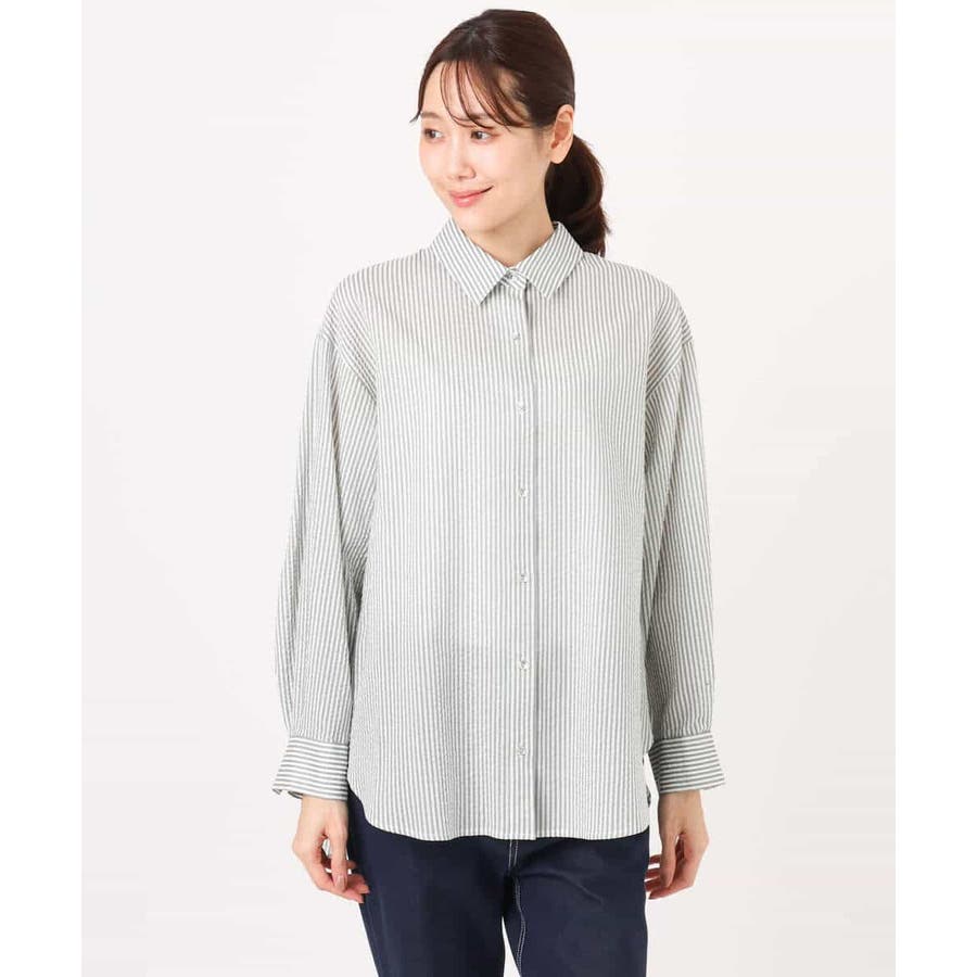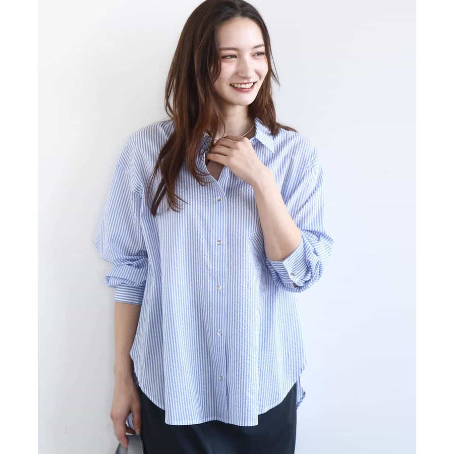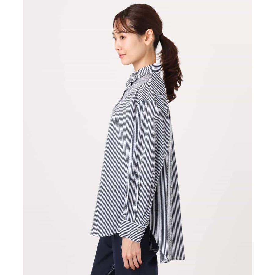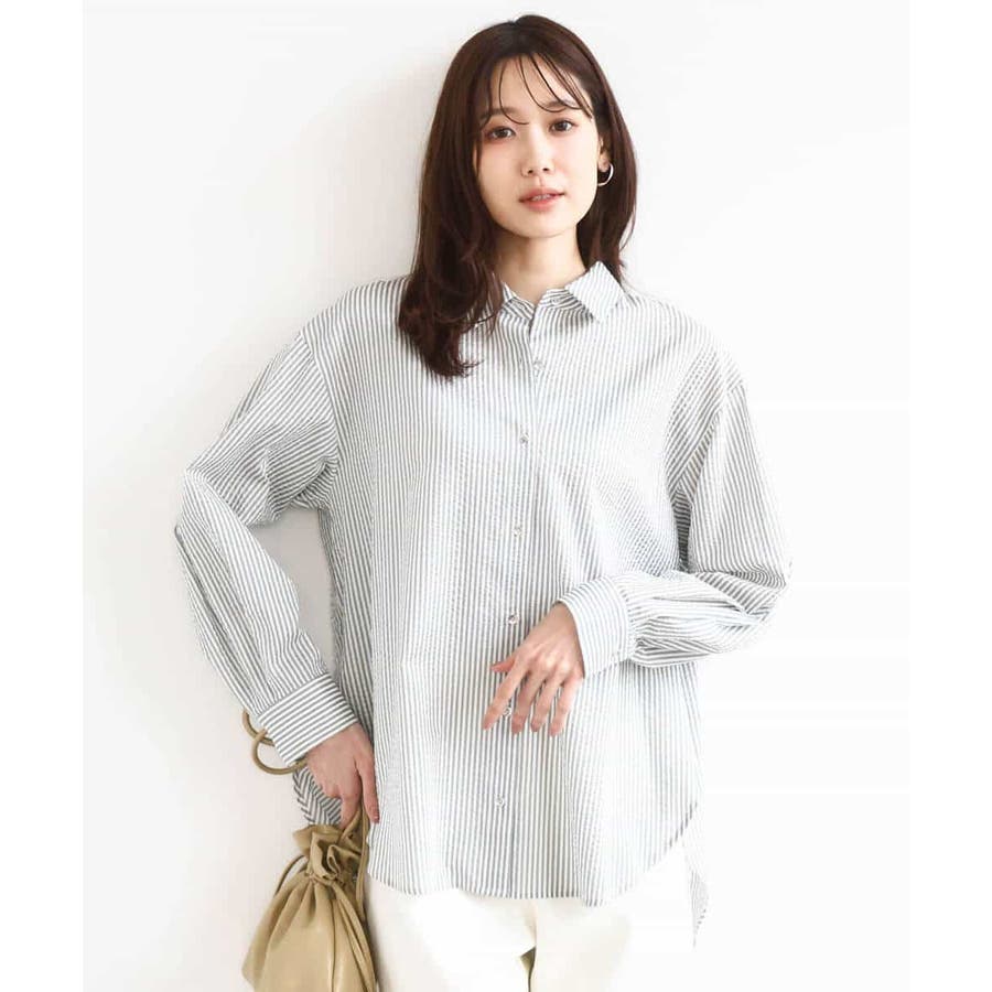 昨年大好評だったストライプシャツが、今年も登場。季節の変わり目から夏の紫外線対策まで、長いシーズン活躍してくれるのが人気の理由です。コットン100で肌触りがやわらかく、着心地も◎ 腕周りや身幅にゆとりがあるので、ストレス感なく着られました。ややシアーな素材感とストライプ柄が軽やかで、春にぴったりな印象。着丈は152cmの私で、ヒップが隠れるくらいの長さでした。羽織りとしてはもちろん、一枚で少しボタンを開けて後ろに抜いて着るのも、こなれ感が出ておすすめです。 ----------------