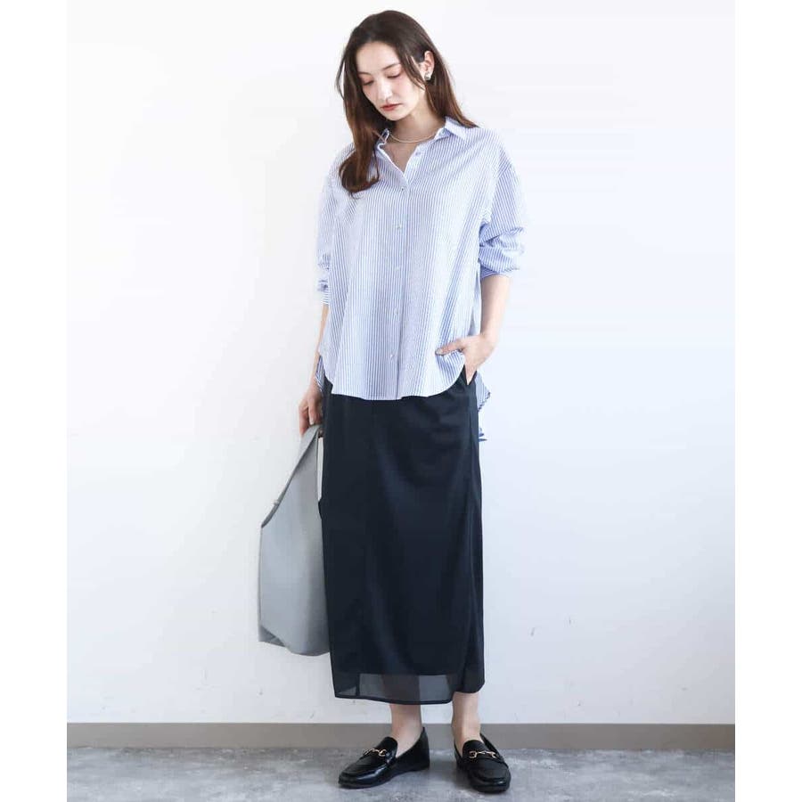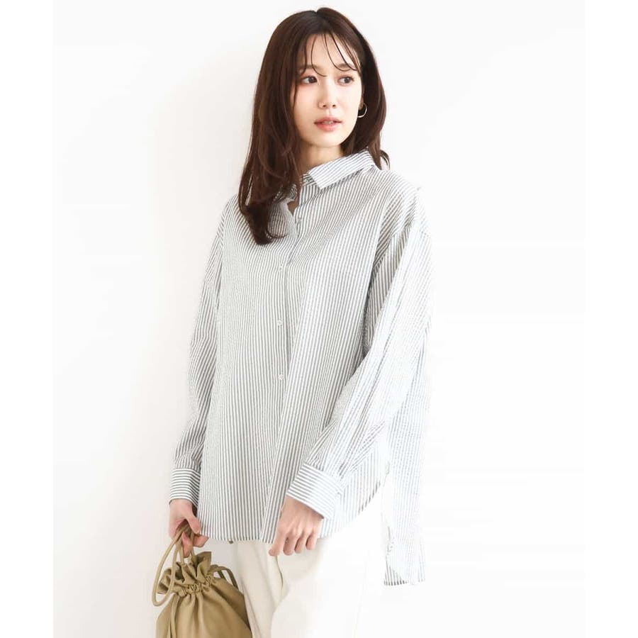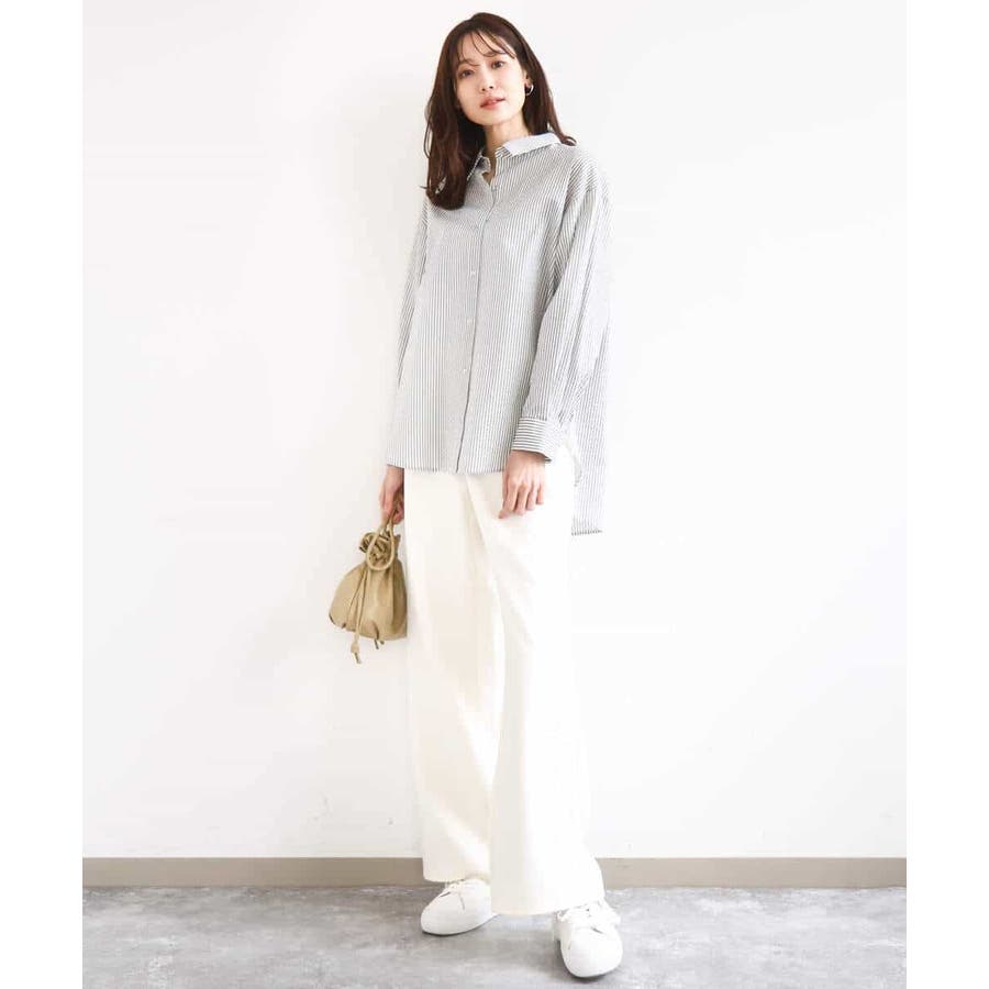 タンクトップやTシャツの上にさっと気軽に羽織っても素敵な着こなしに。細いストライプ柄はアクセントになりながらコーデの邪魔をしないので、着回し力が高いのも魅力。羽織りとしても一枚着としてもシーズンレスで重宝するアイテムです。