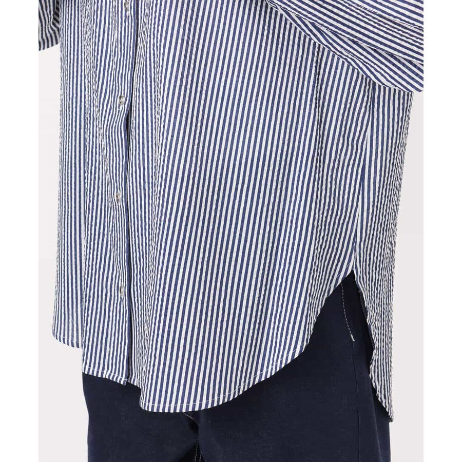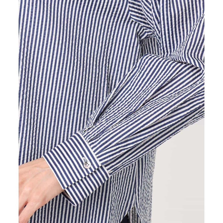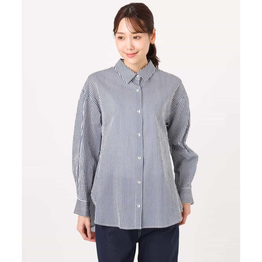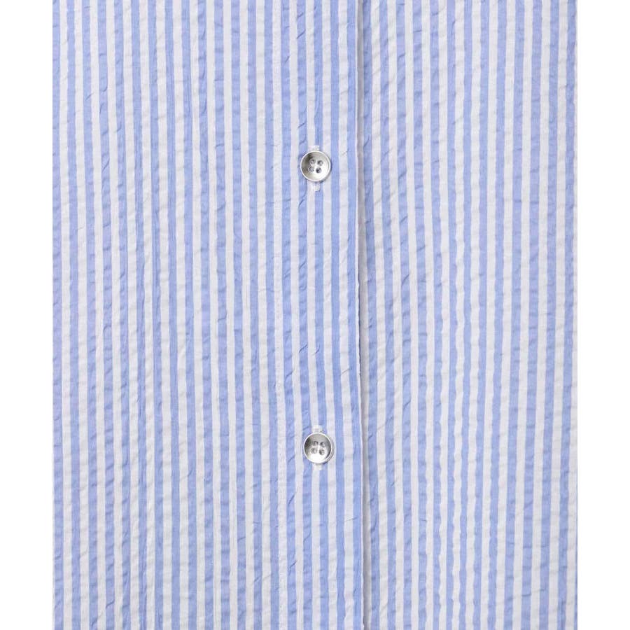 ストライプ柄サッカーシャツブラウス/洗える