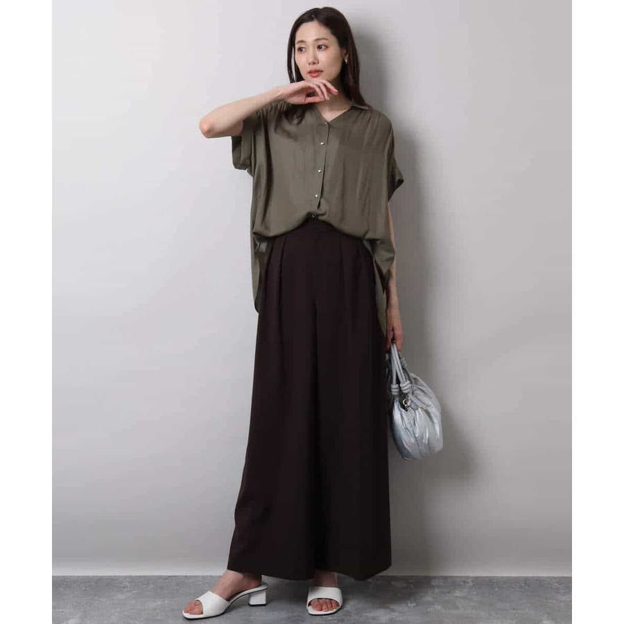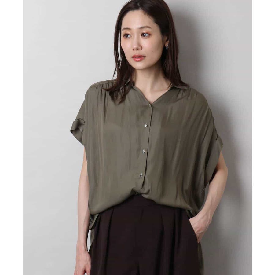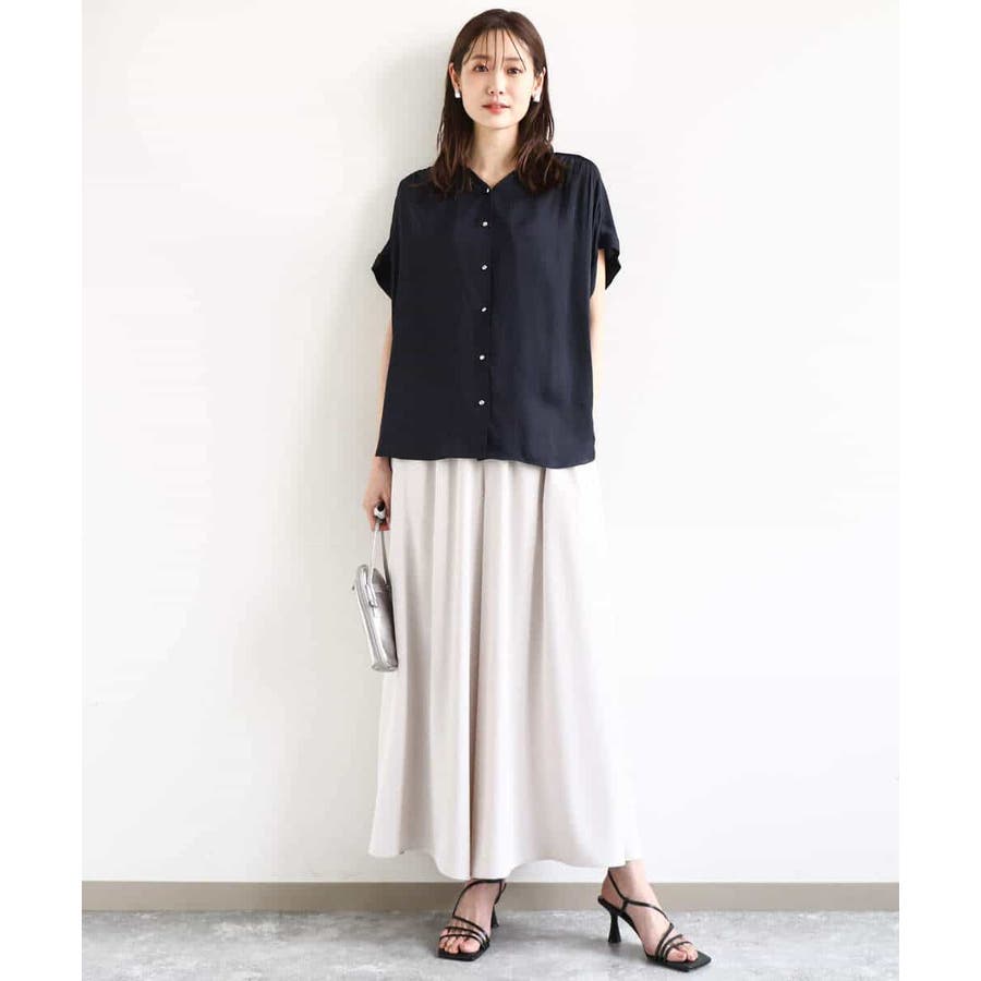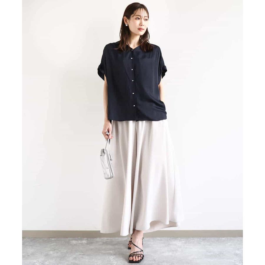 きれいな落ち感とさらりとした素材感にカジュアルすぎないきちんと見えのサテン素材を使用。軽さのある素材感は3シーズン長く着回し可能。接触冷感機能付き。