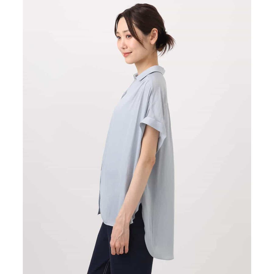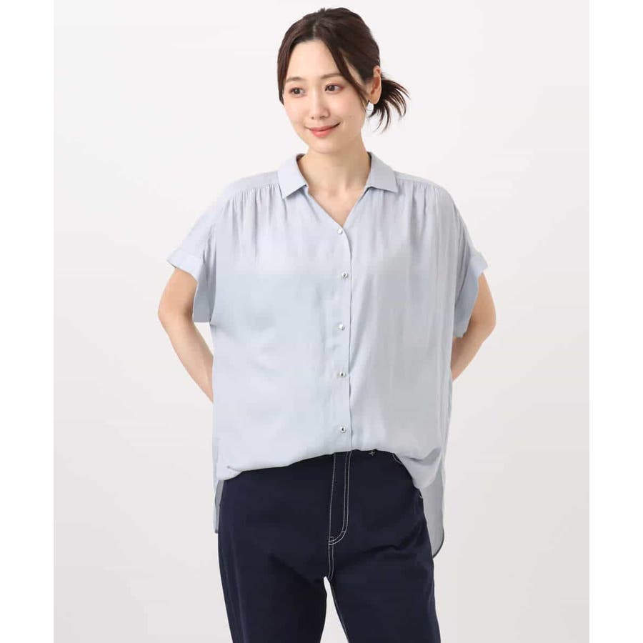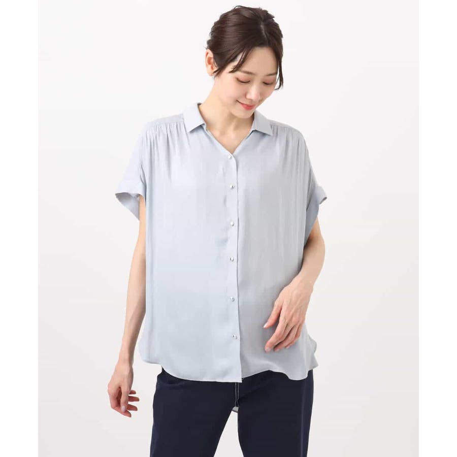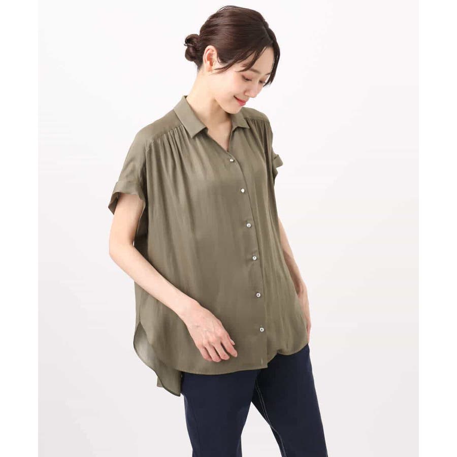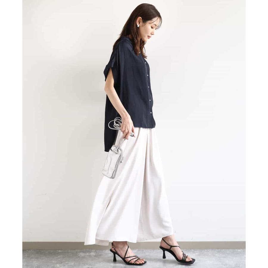 きれいな落ち感とさらりとした素材感にカジュアルすぎないきちんと見えのサテン素材を使用。軽さのある素材感は3シーズン長く着回し可能。接触冷感機能付き。