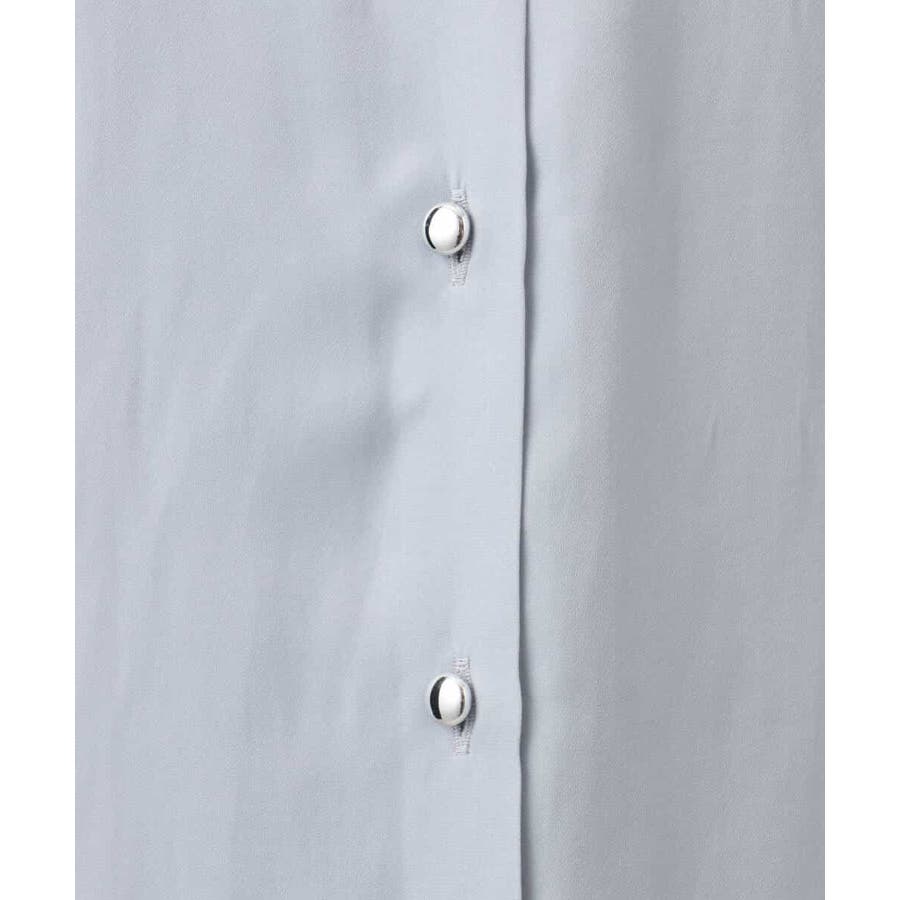 メタル釦デザイン サテン地ブラウス/接触冷感/洗える