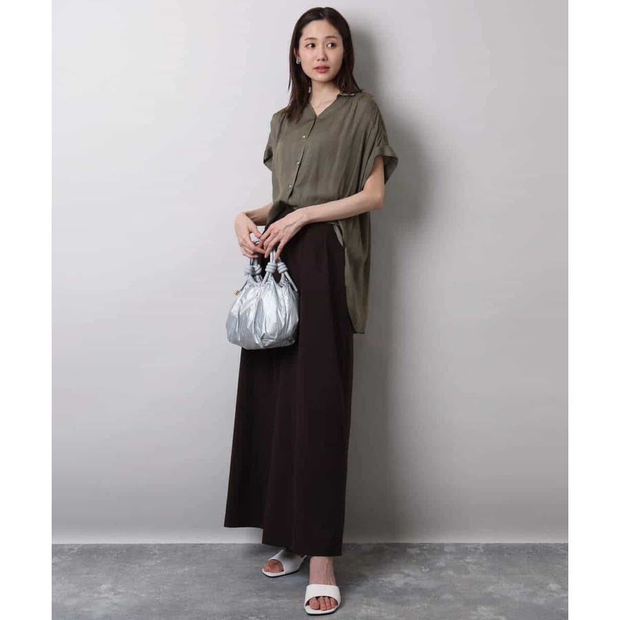 ボトムを選ばず、インでもアウトでも決まります。同素材のスカート見えガウチョパンツとセットアップでワンピース風の着こなしも◎。