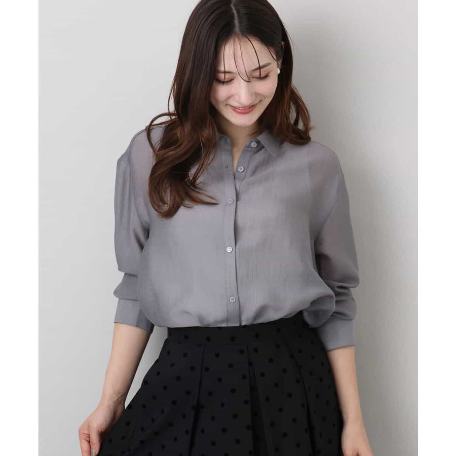 ゆったりしたサイズ感でラフに着やすいシャツブラウスです。長袖ですがシアー感があるので暑苦しくなく、日除けや冷房対策などに一枚持っていると暑い時期でも重宝します。少し光沢感のある柔らかな素材で、優しい印象になります。