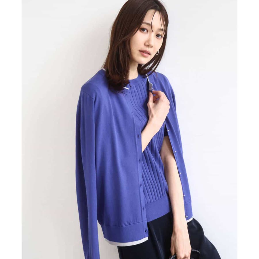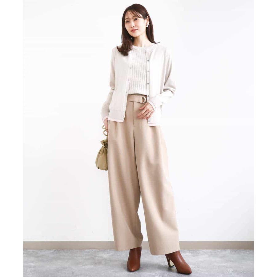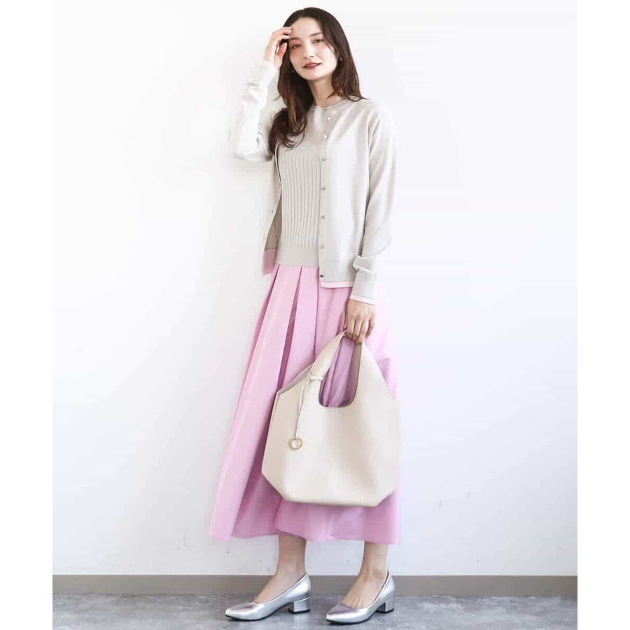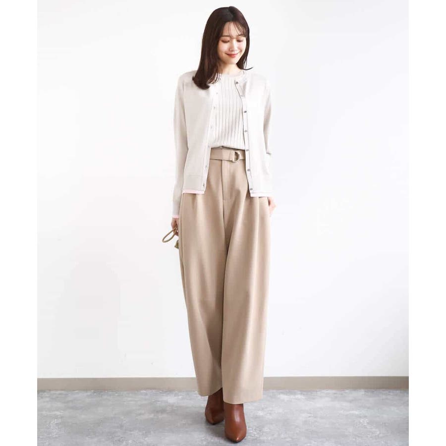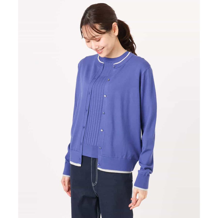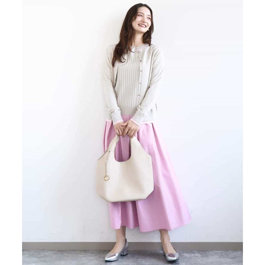 カーディガン一枚で前を閉じ、一枚着プルオーバーのように着こなすのもおすすめ。この先、暖かくなってもカーディガンを肩掛けしたり、半袖プルオーバーは単品でも、それぞれ着回し力の高いセットアイテムです。