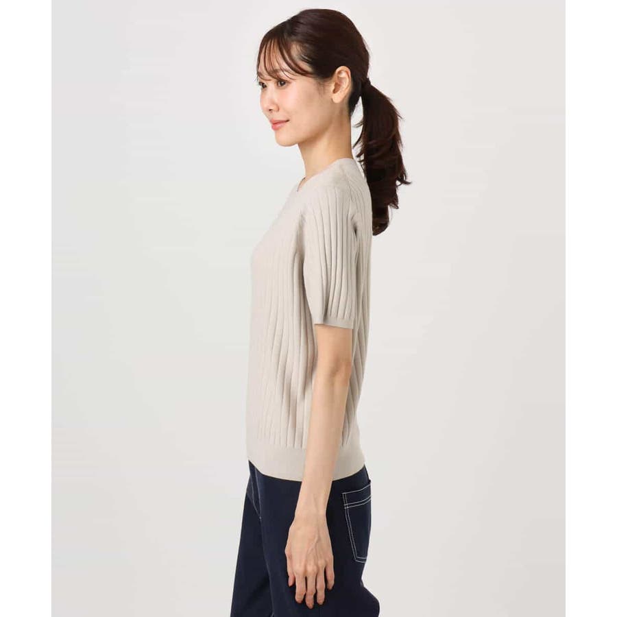 やわらかなハイゲージのニット素材を使用。シーズンレスで着こなしやすいきれいめニット素材です。
