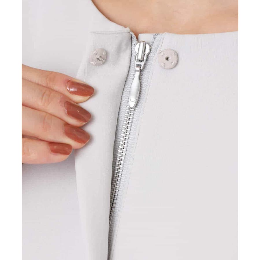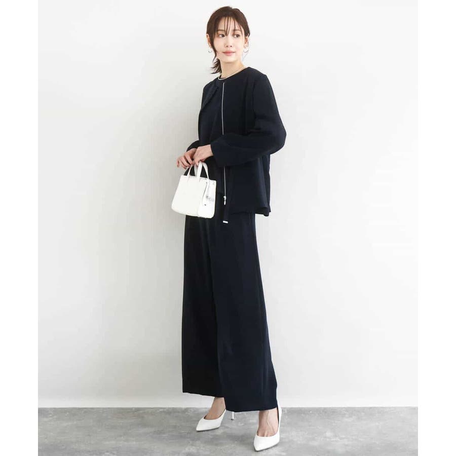 同素材のブラウス、パンツもご用意しているので、組み合わせてセットアップでの着用も楽しめます。カーディガン感覚で着用できるので前を開けてさらっと羽織るのもおすすめです。ファスナーを閉めるとブラウスとして、一枚でトップスとしてのコーディネートも◎
