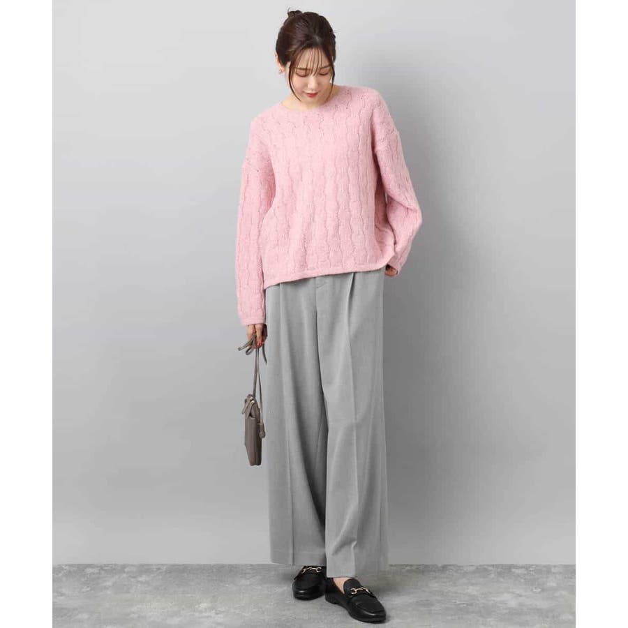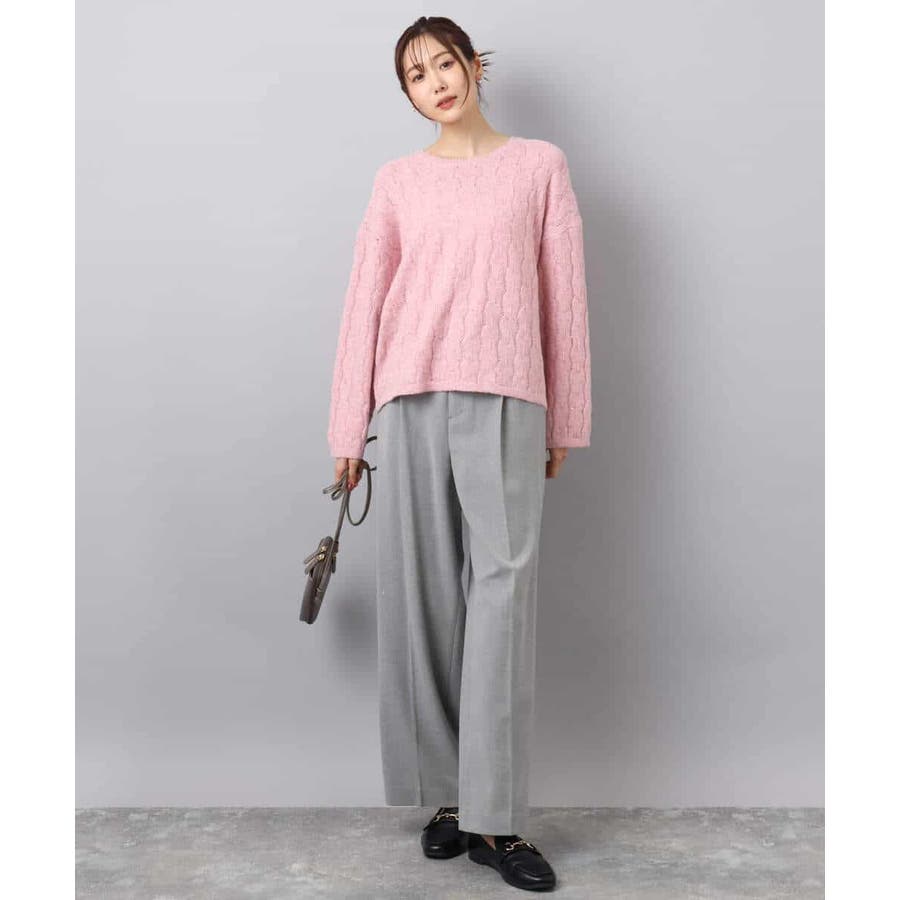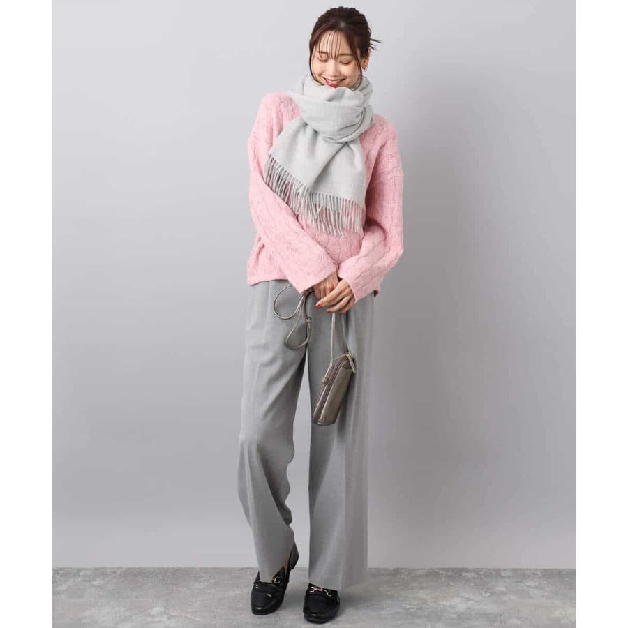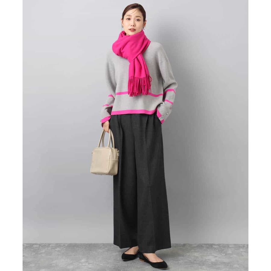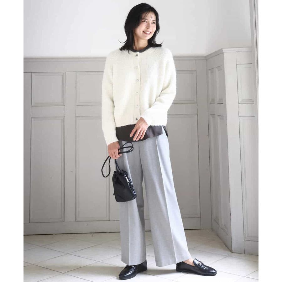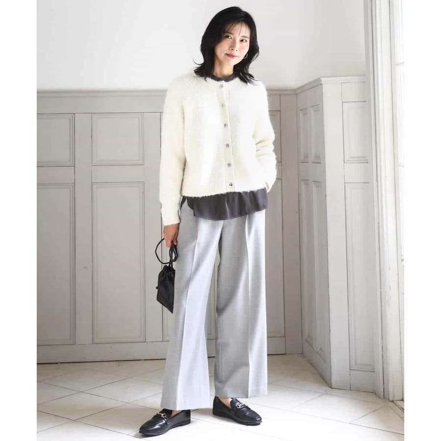 まるで無地のようなツイード調の柄は合わせやすさが魅力的。お仕事からお休みの日まで着こなすシーンを選びません。