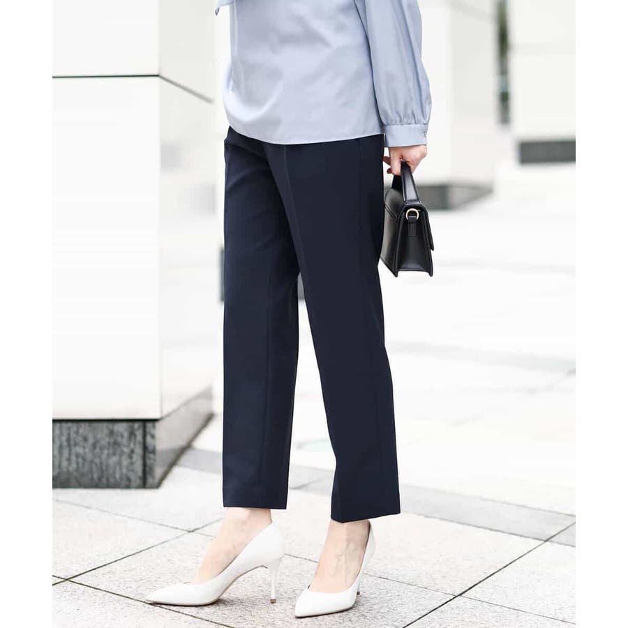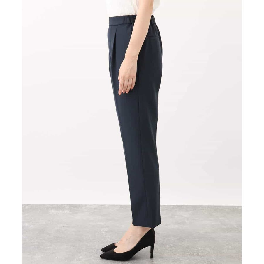 トレンド関係なく何年も穿きこなせるものだから、パターンにこだわった美脚シルエットパンツ。ヒールもフラットシューズも合わせやすいテーパードシルエットです。ウエストは後ろゴム仕様のプルオンデザイン。ゴムなのでストレスフリーに快適に着用いただけます。脚のラインがすっきりと見えるセンタープレス入り。