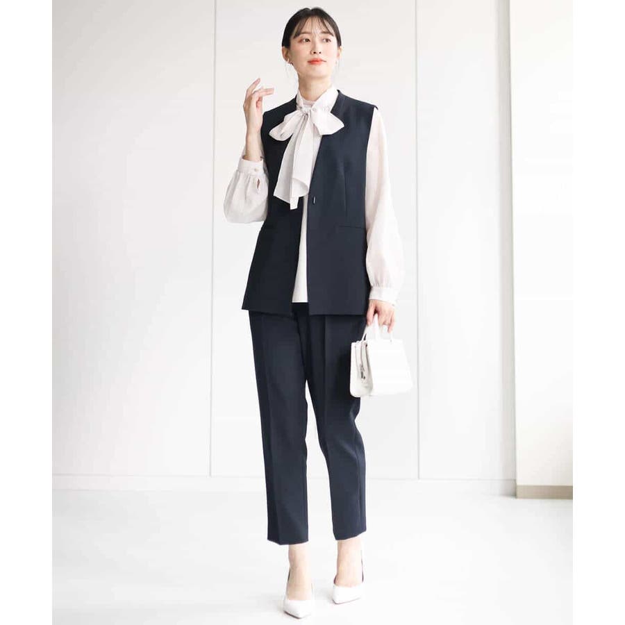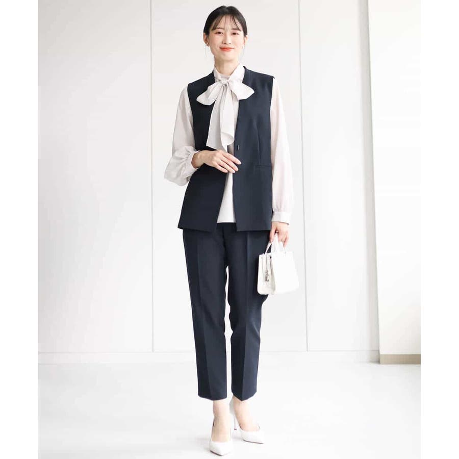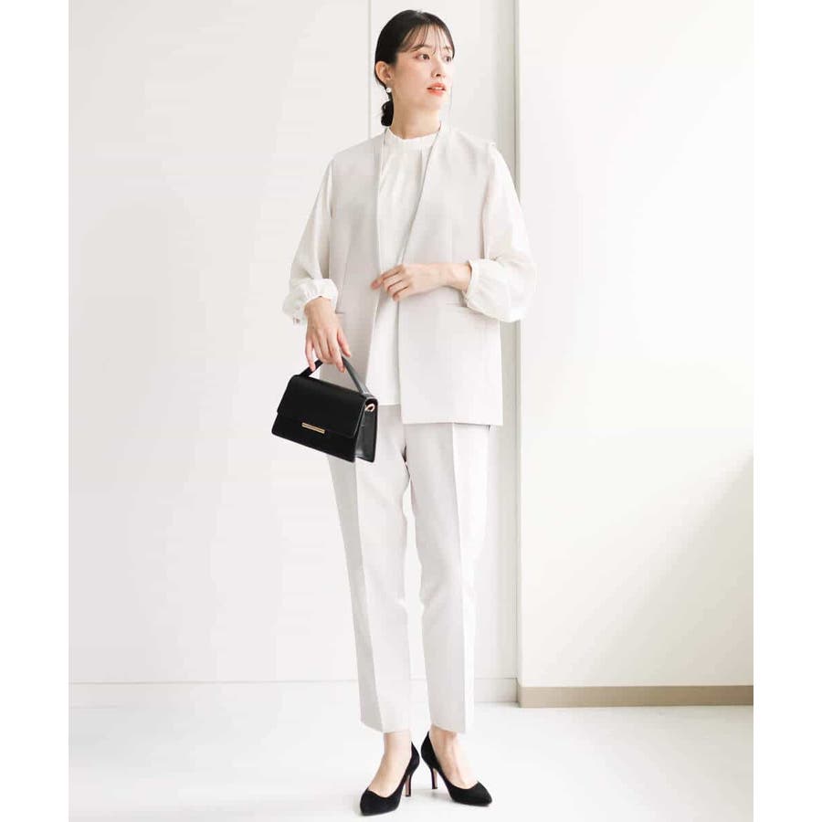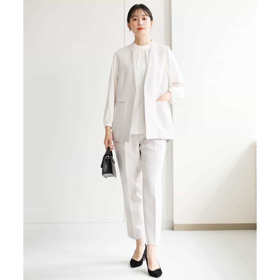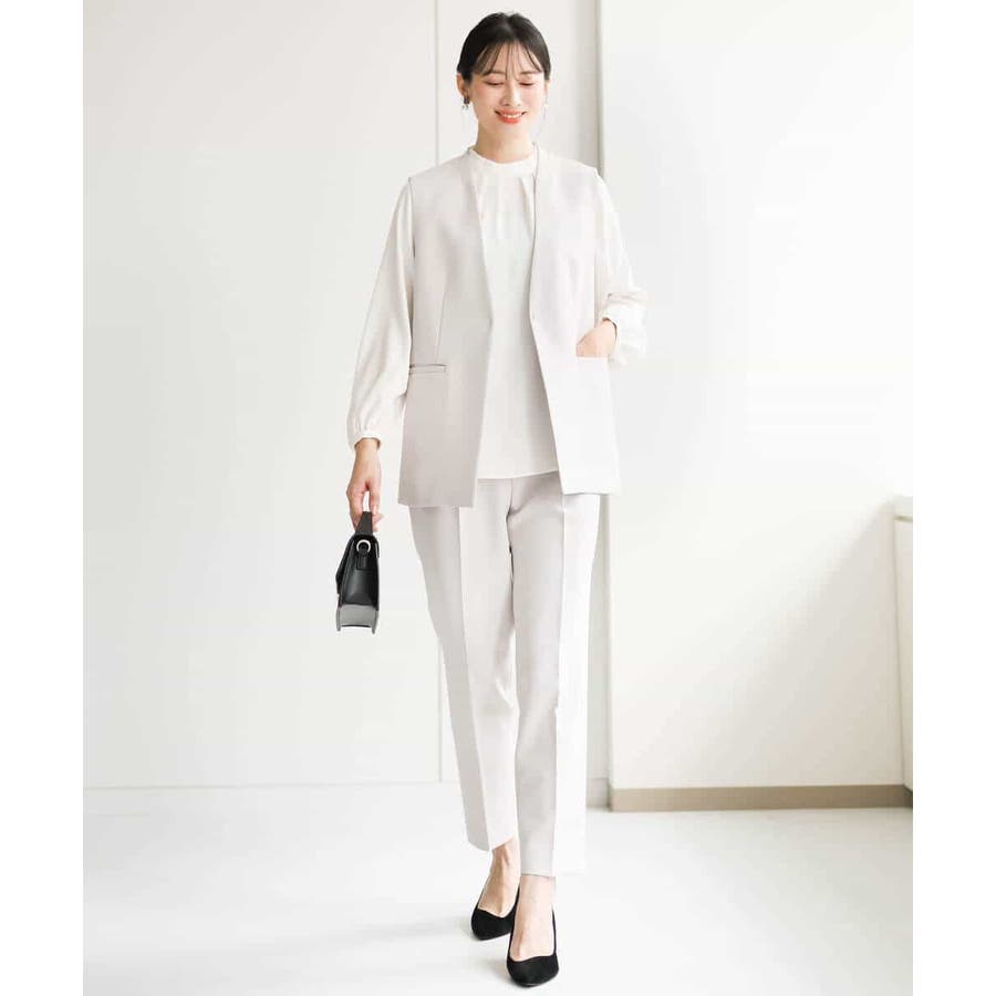 同素材のブラウス、ジレをご用意しており、組み合わせてセットアップでの着こなしも楽しめます。シンプルなデザインは単品使いで、お仕事、セレモニー、行事ごとやお食事会まで対応。