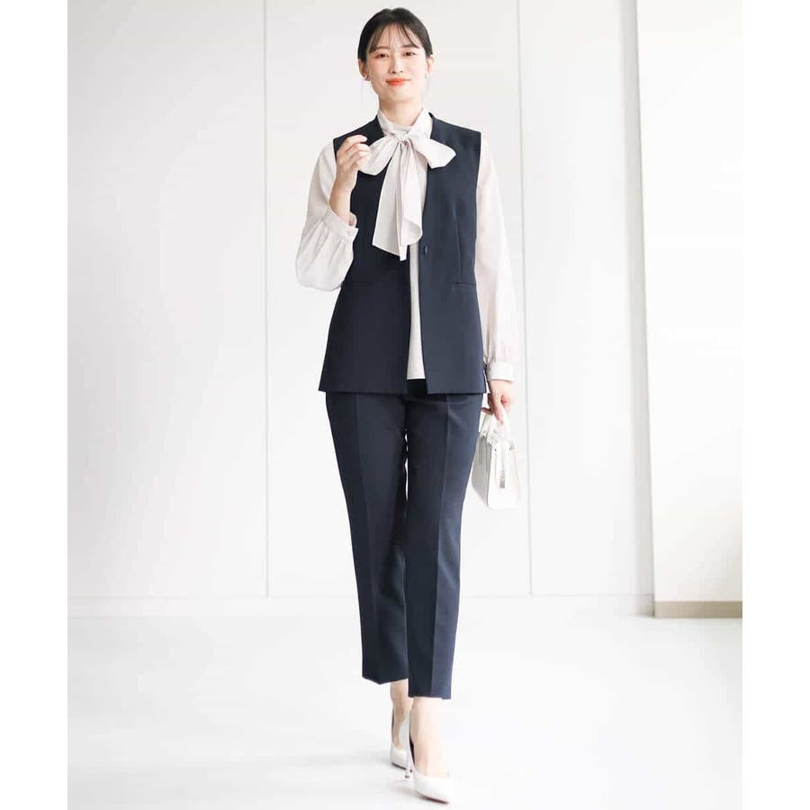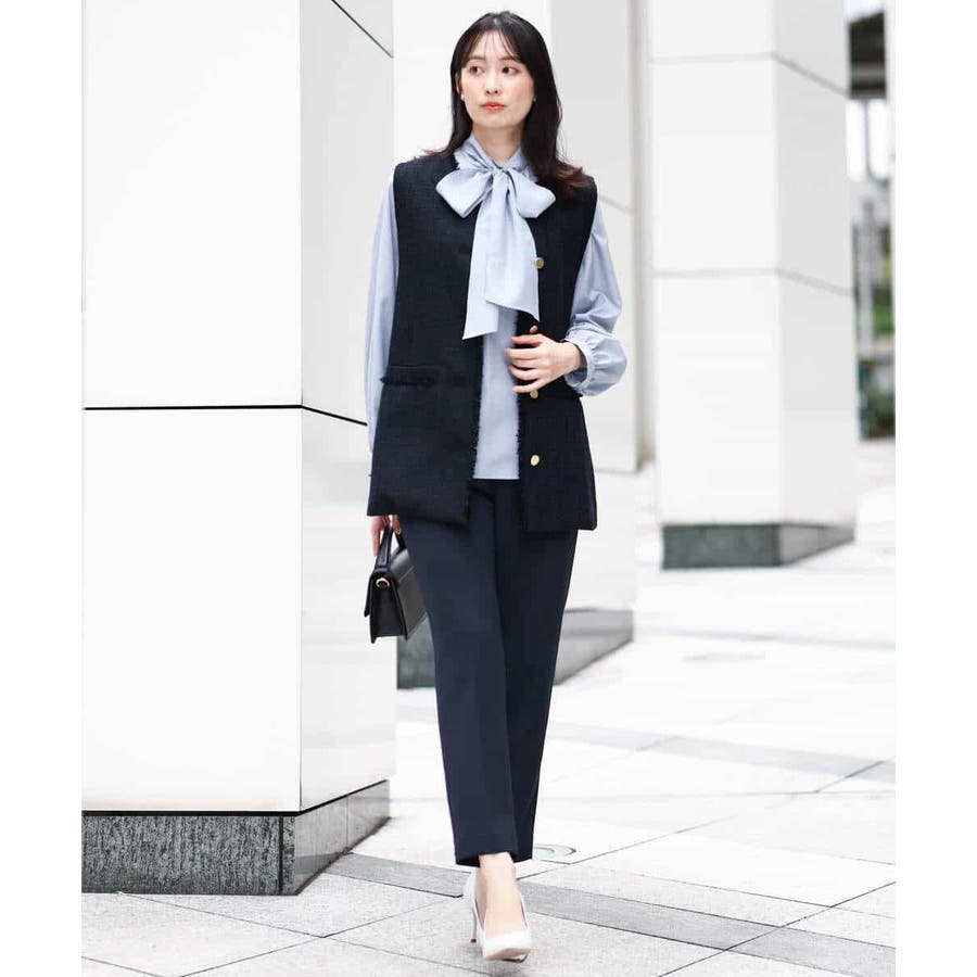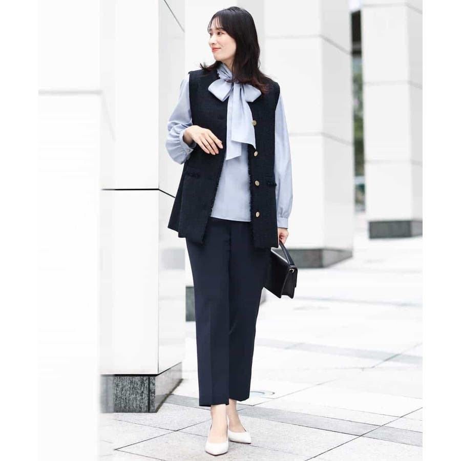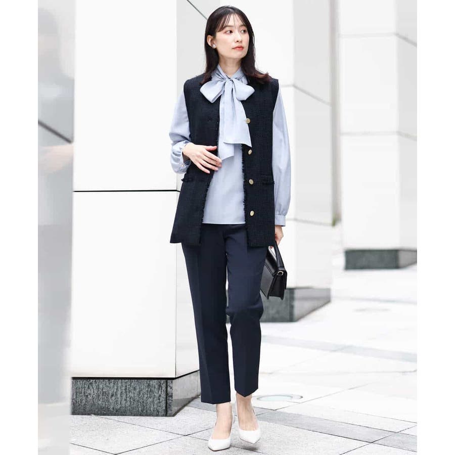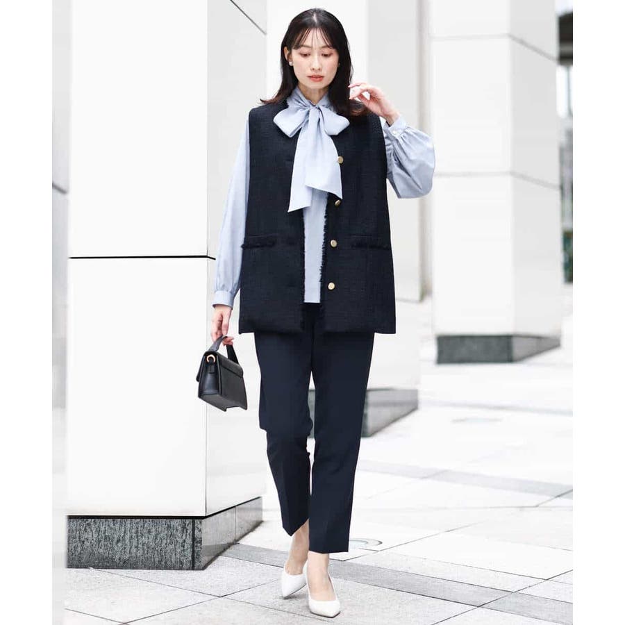 同素材のブラウス、ジレをご用意しており、組み合わせてセットアップでの着こなしも楽しめます。シンプルなデザインは単品使いで、お仕事、セレモニー、行事ごとやお食事会まで対応。