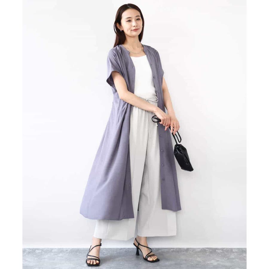ウエストオールゴムでラクな履き心地のワイドパンツです。(紐で調節ができるので、Sサイズの方もお召しいただけます。)ロング丈でストンと落ちるシルエットは、脚長×細見え効果あり◎154cmでフラットシューズをギリギリ履ける着丈で、低身長さんはヒールや厚底合わせがおすすめです。ナチュラル見えながら伸縮性のあるジャージのような素材感で、シワになりにくく、センタープレス入りですっきりと、きちんとした印象になります。デイリー使いしやすいのはもちろん、オンオフ問わず着回せる万能アイテムです。◎洗濯機洗い可能◎速乾◎UVカット◎接触冷感◎3シーズン着用可能