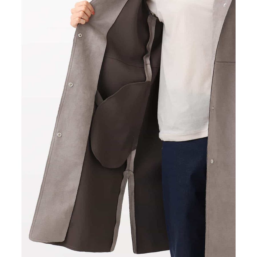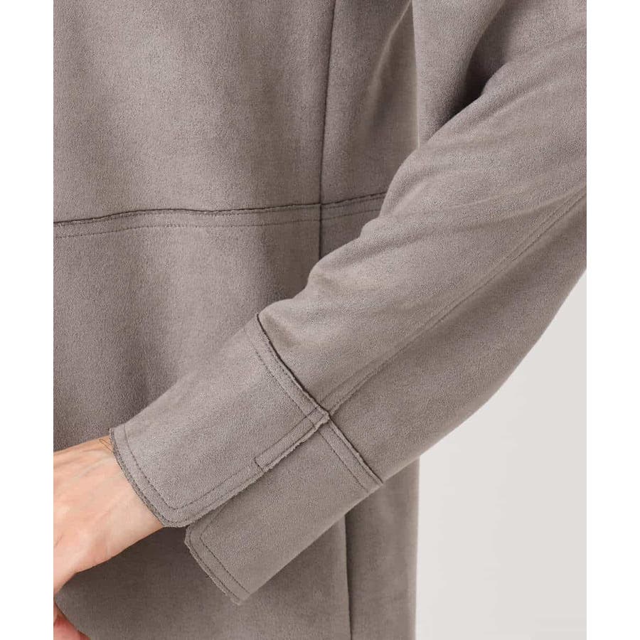 ふくらみとハリ感のあるフェイクスウェードのダンボール生地を使用。軽い素材感はカーディガン感覚でさらっと羽織りやすい。フェイクスウェードながらの色味のきれいさもポイント。裏なしの一枚仕立てになります。