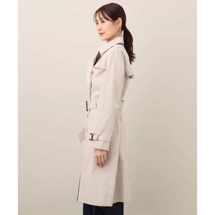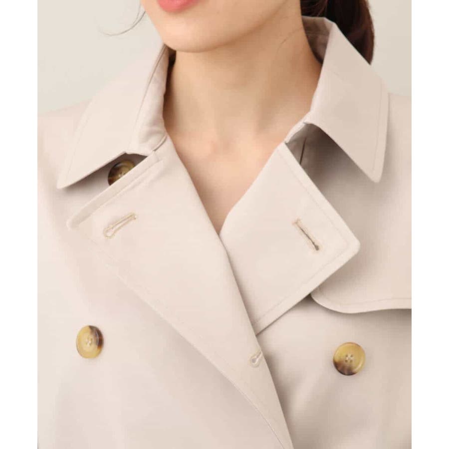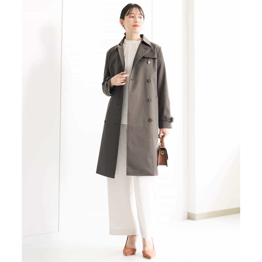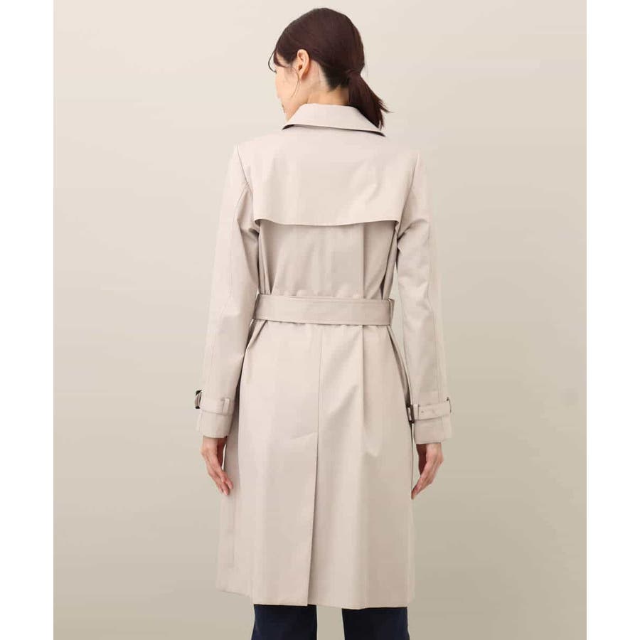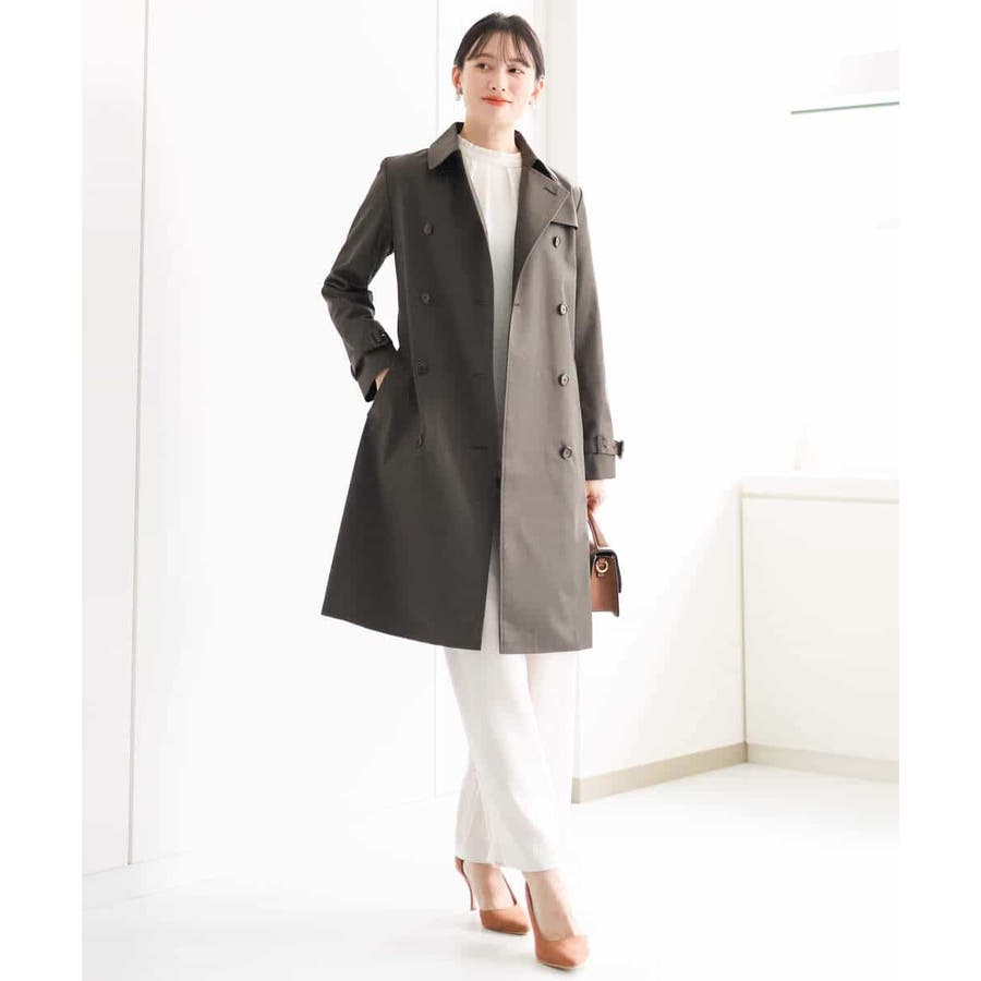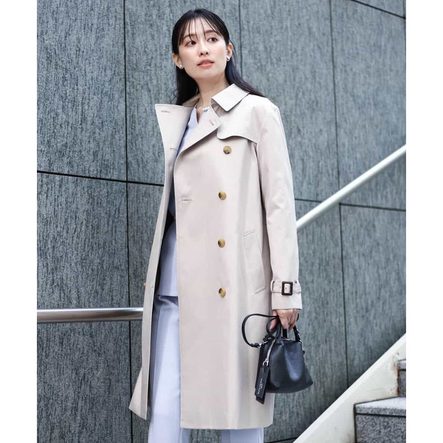程良いハリと適度なやわらかさのある素材はきちんと感と女性らしさを両方兼ね備えた印象に。春秋どちらも着こなせる素材は、防花粉・撥水加工を施しより快適に。