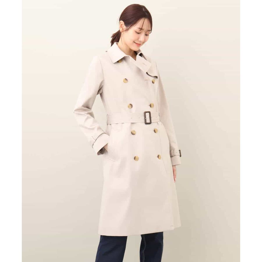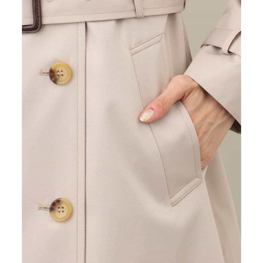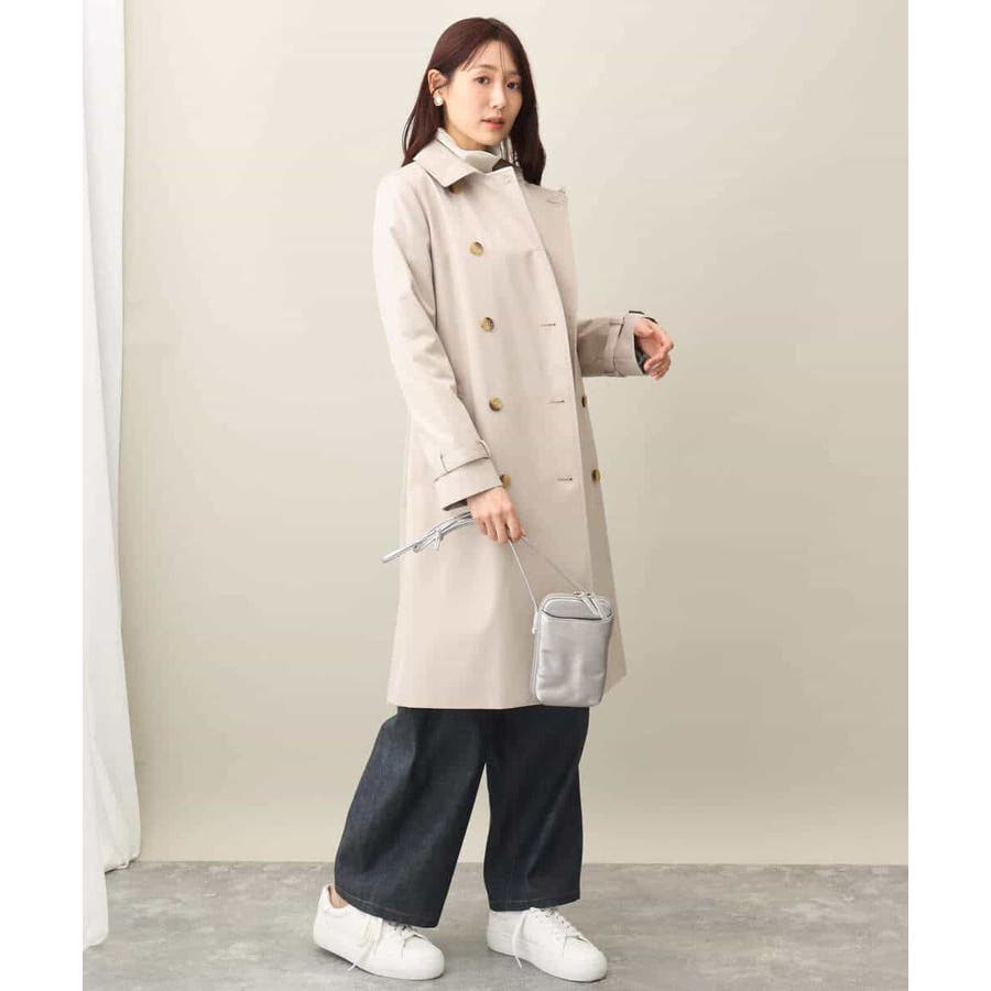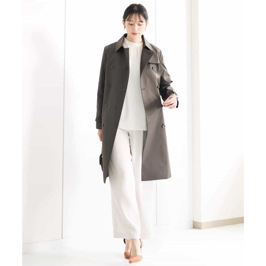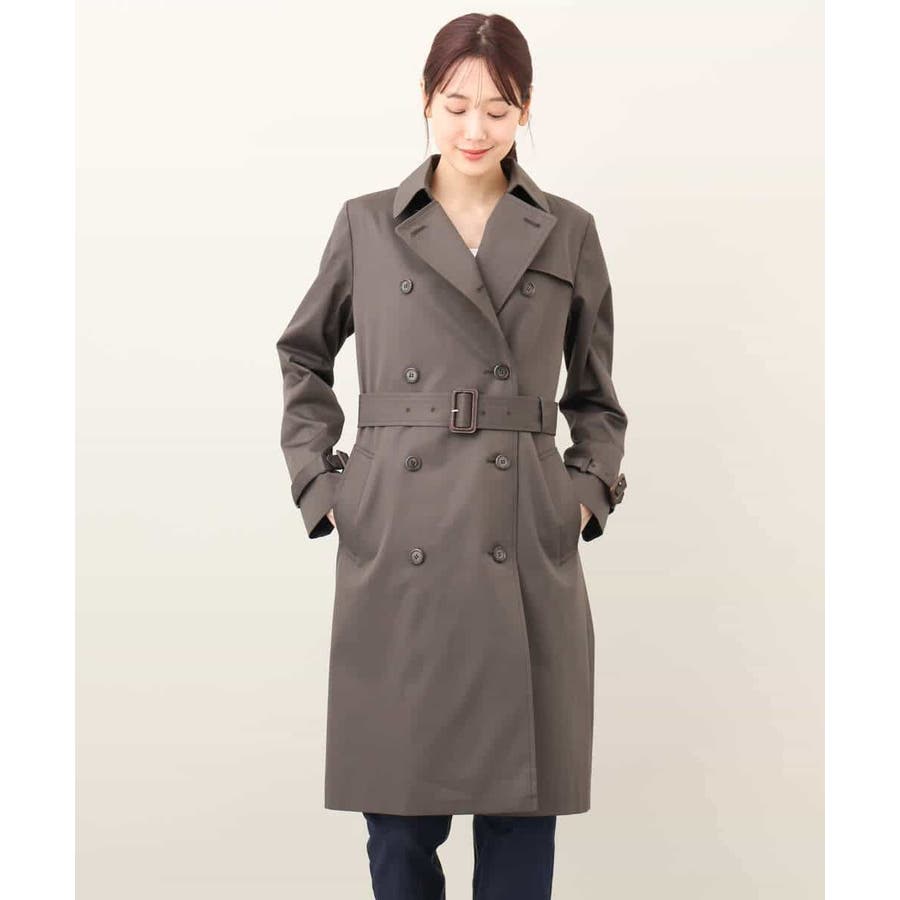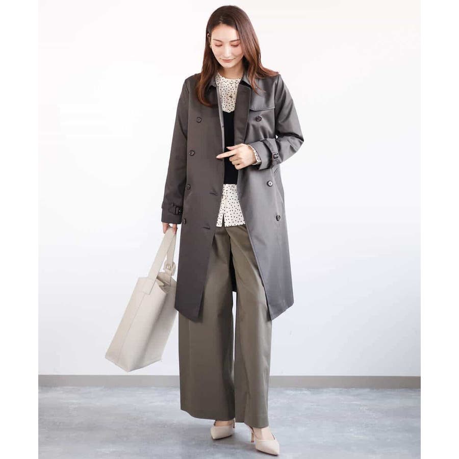 程良いハリと適度なやわらかさのある素材はきちんと感と女性らしさを両方兼ね備えた印象に。春秋どちらも着こなせる素材は、防花粉・撥水加工を施しより快適に。