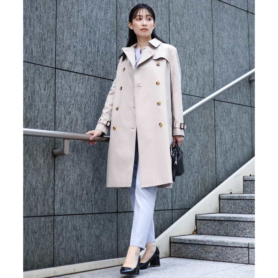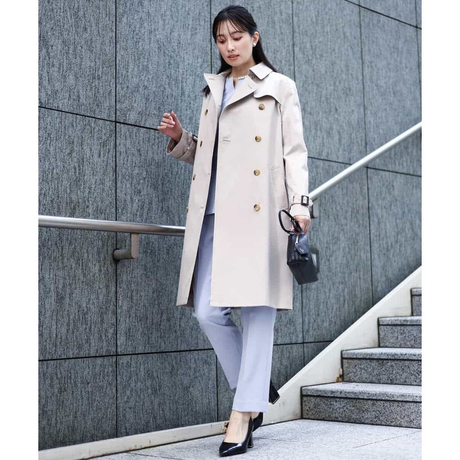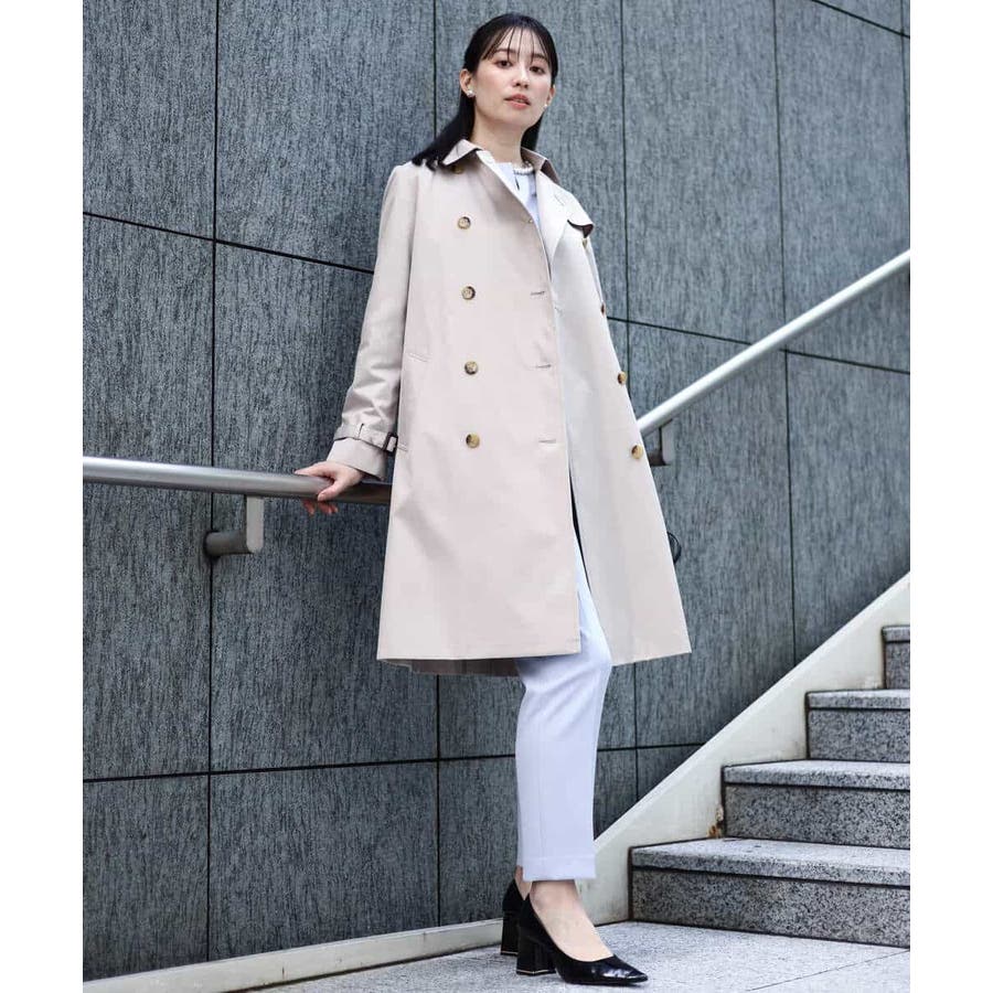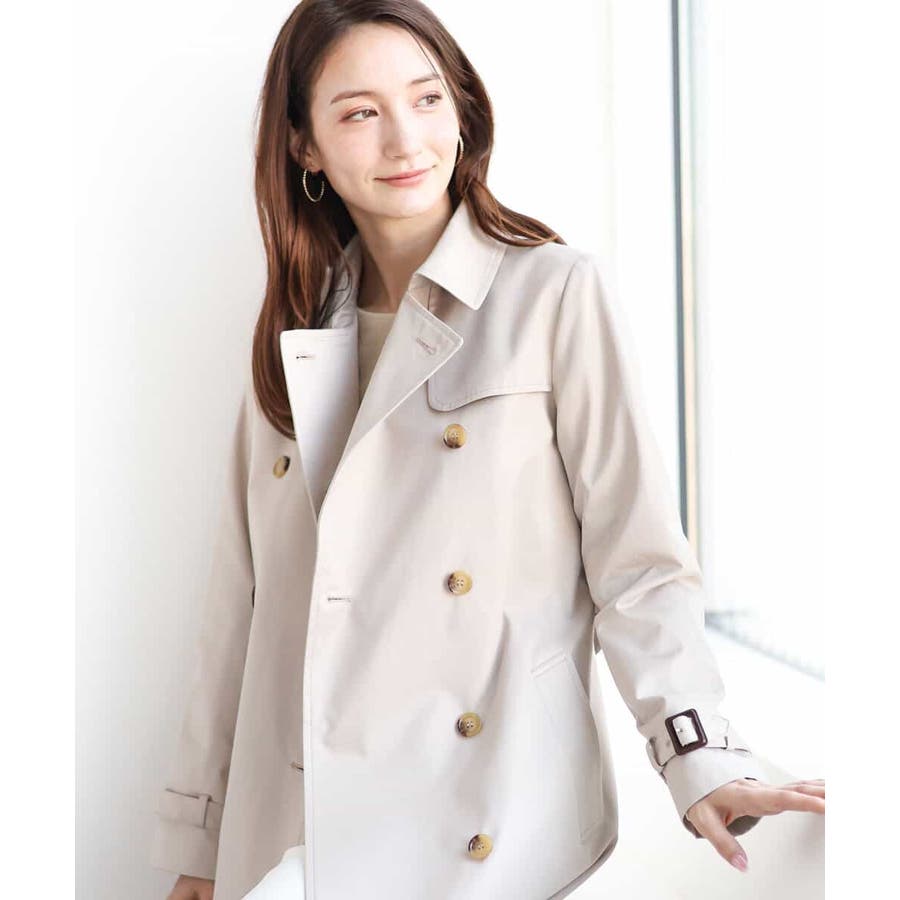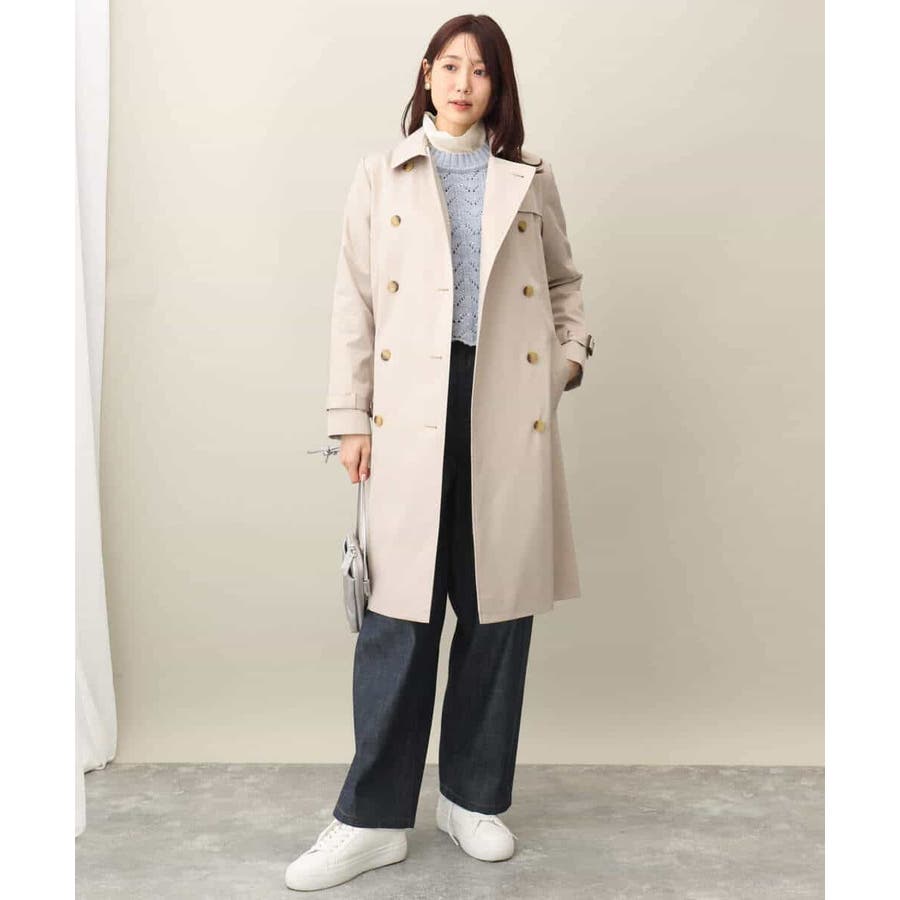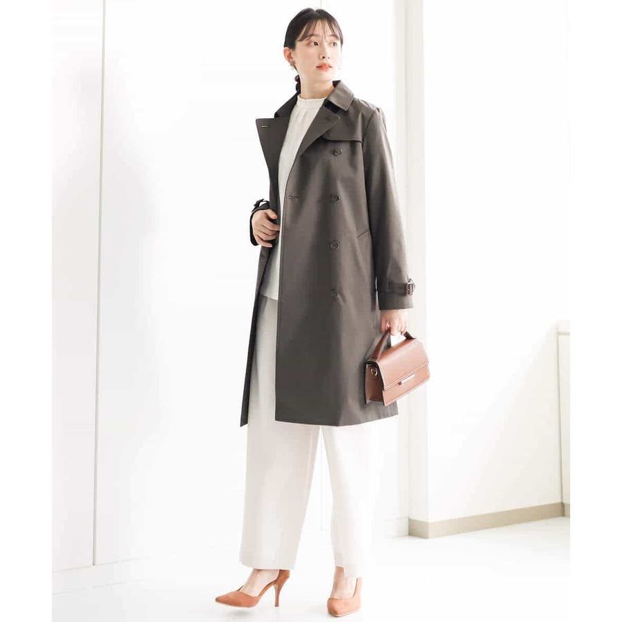 程良いハリと適度なやわらかさのある素材はきちんと感と女性らしさを両方兼ね備えた印象に。春秋どちらも着こなせる素材は、防花粉・撥水加工を施しより快適に。
