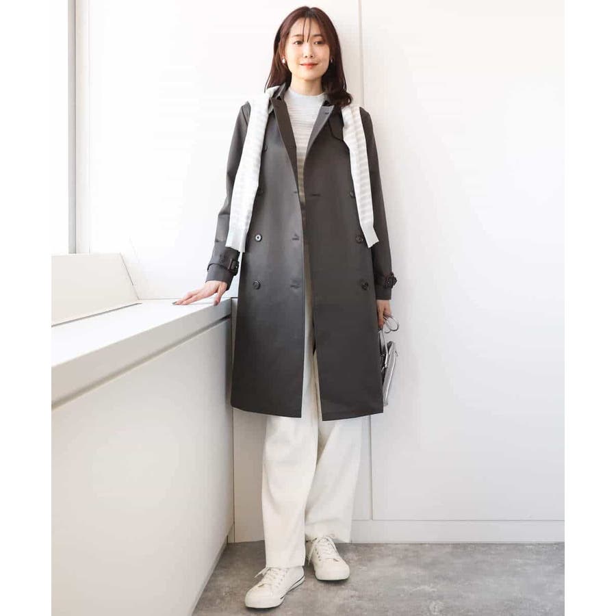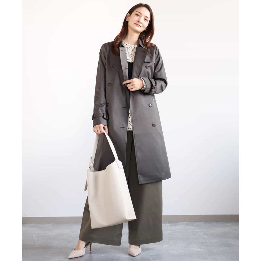 シンプルなシルエットはON・OFF問わずきれいめなスタイリングにマッチします。季節の変わり目にちょうどいいトレンチコートは買い替えにもおすすめです。