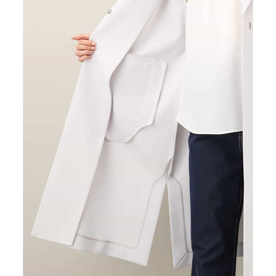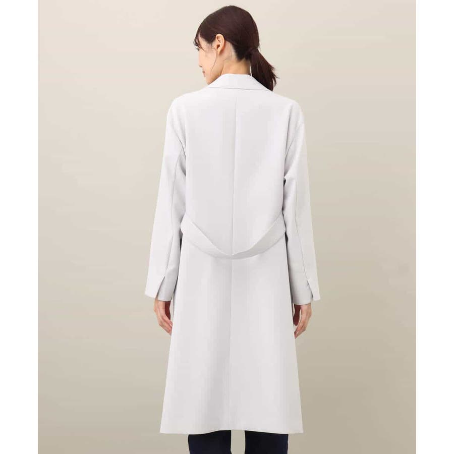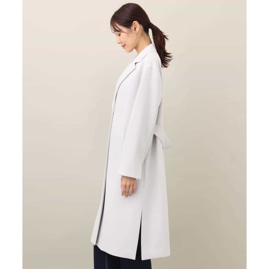 一重仕立ての軽さがポイントのコート。肩はきれいめにも着こなしやすいドロップショルダーで、脇には長めのスリットを入れこなれた印象に。脇で切替え、後ろ身頃のみに施したベルトデザインはライトに羽織っても決まります。