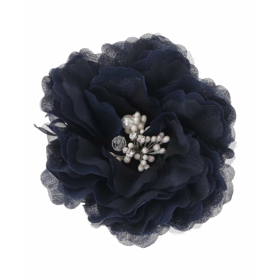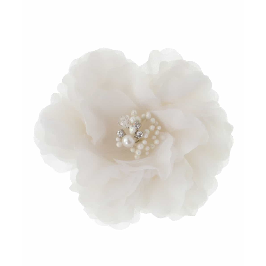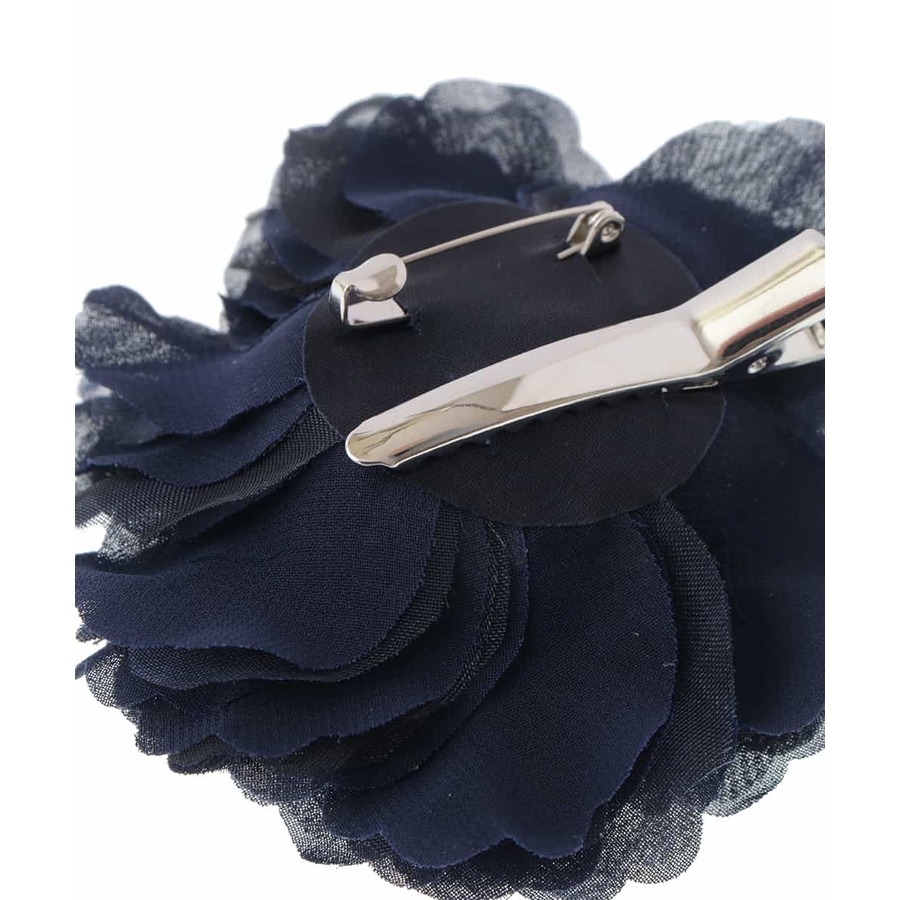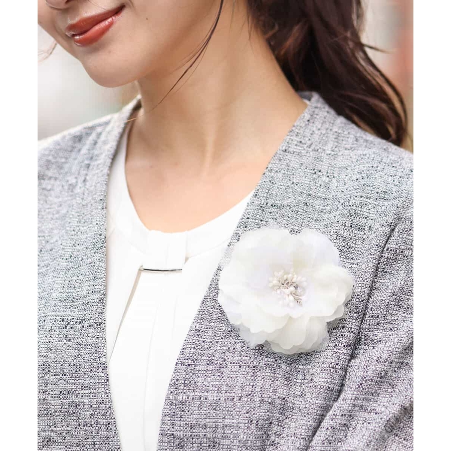 シフォンのやわらかさに、中央のビジューやパールが華やかさを演出してくれるコサージュ。存在感がありながらも女性らしいコサージュは式典や行事ごとにぴったり。留める部分はクリップとピンの2way仕様になっているので、お洋服に穴を開けずに付けられるのも嬉しい。