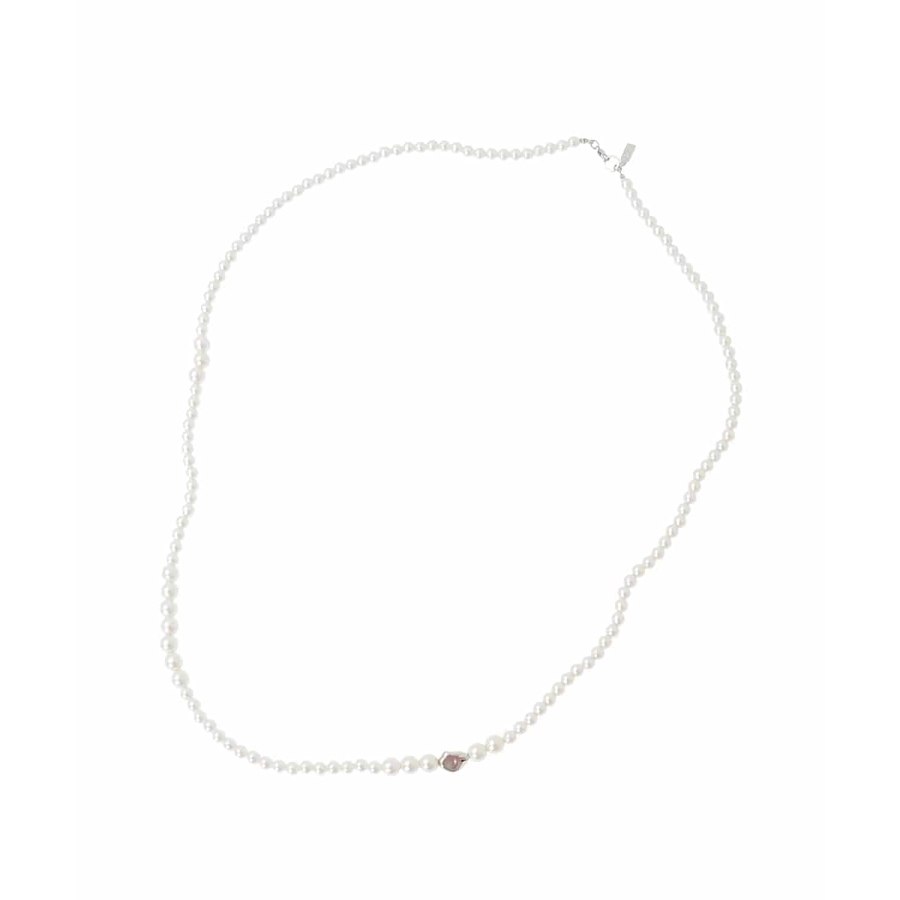 そのままロングネックレスとしても、二重に巻いて二連使いにとアレンジできるアイテム。セレモニーシーンからカジュアルまでオンオフ問わず活躍してくれます。シルバーカラーの1パーツがきらりと光るデザインです。