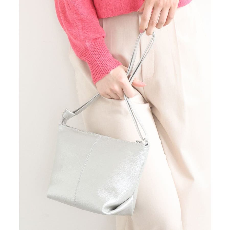 牛革のシュリンクレザー台形ポシェット。シンプルで合わせやすく飽きのこないデザインが魅力。小ぶりに見えて長財布や500mlペットボトルも収納できますサイズ感も優秀。ショルダーの調整で肩掛け、斜め掛けとスタイルによってアレンジできます。