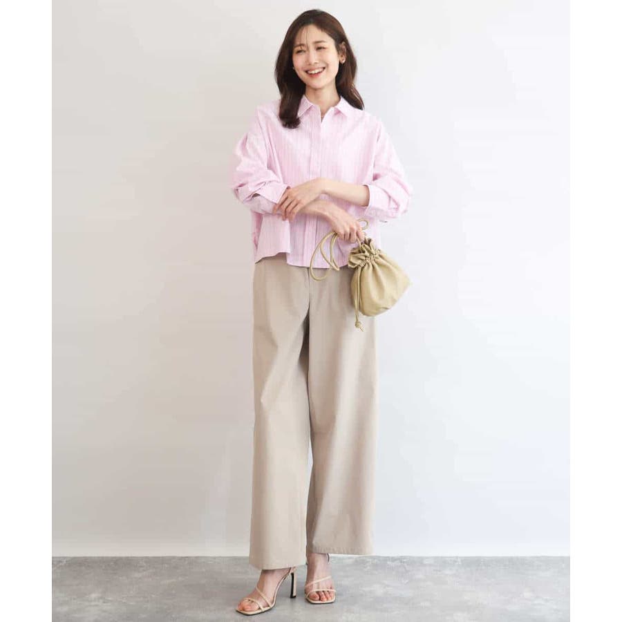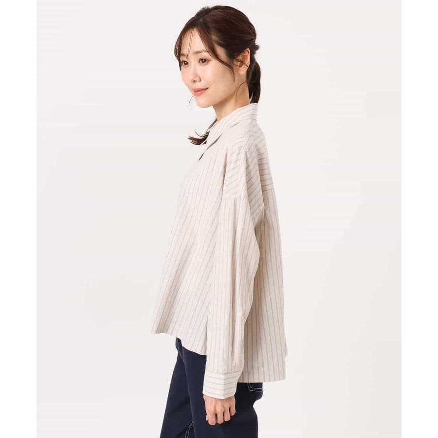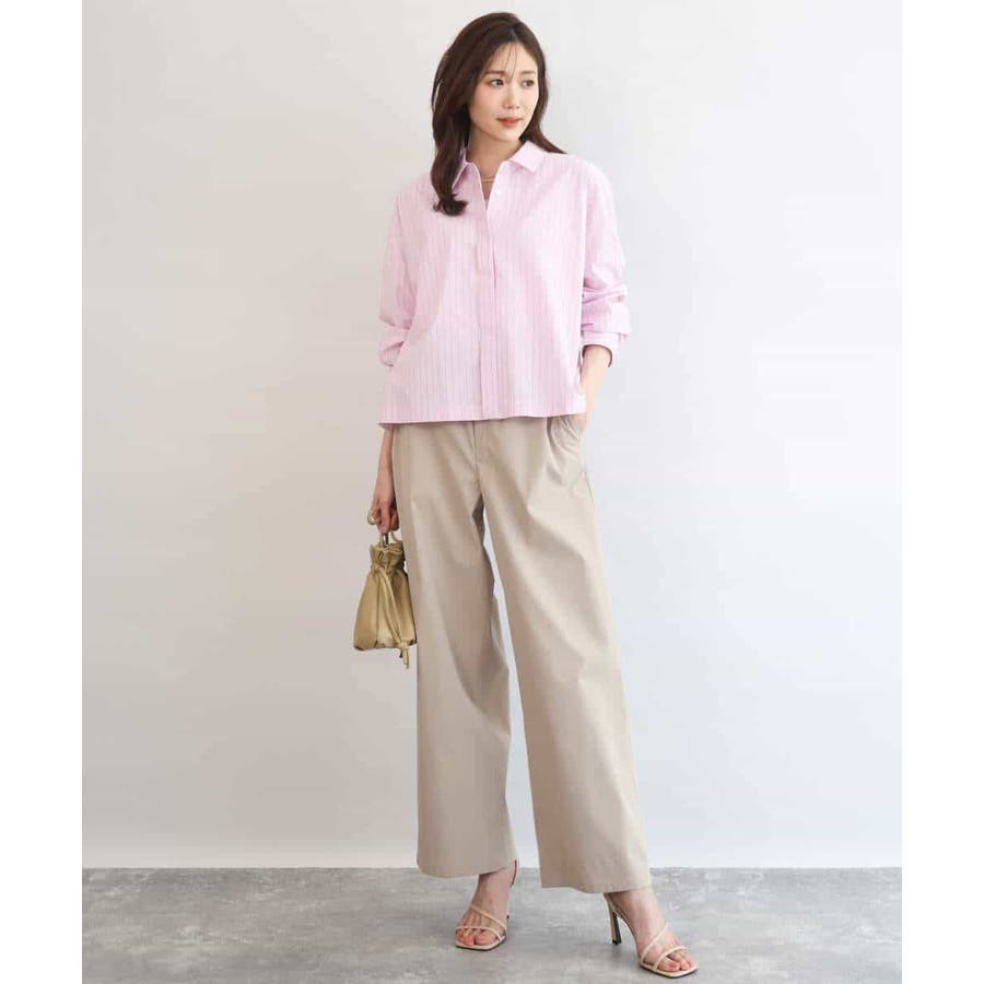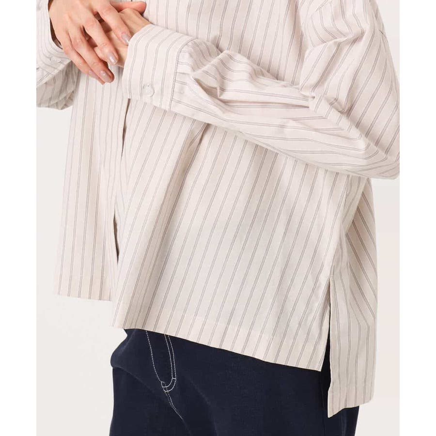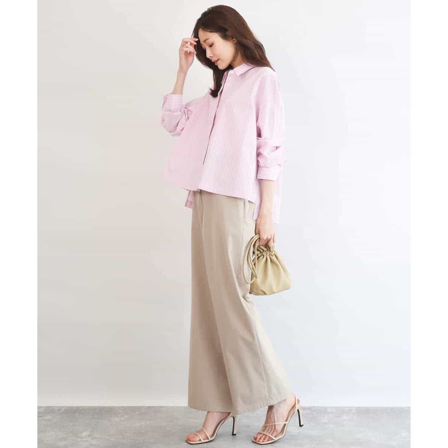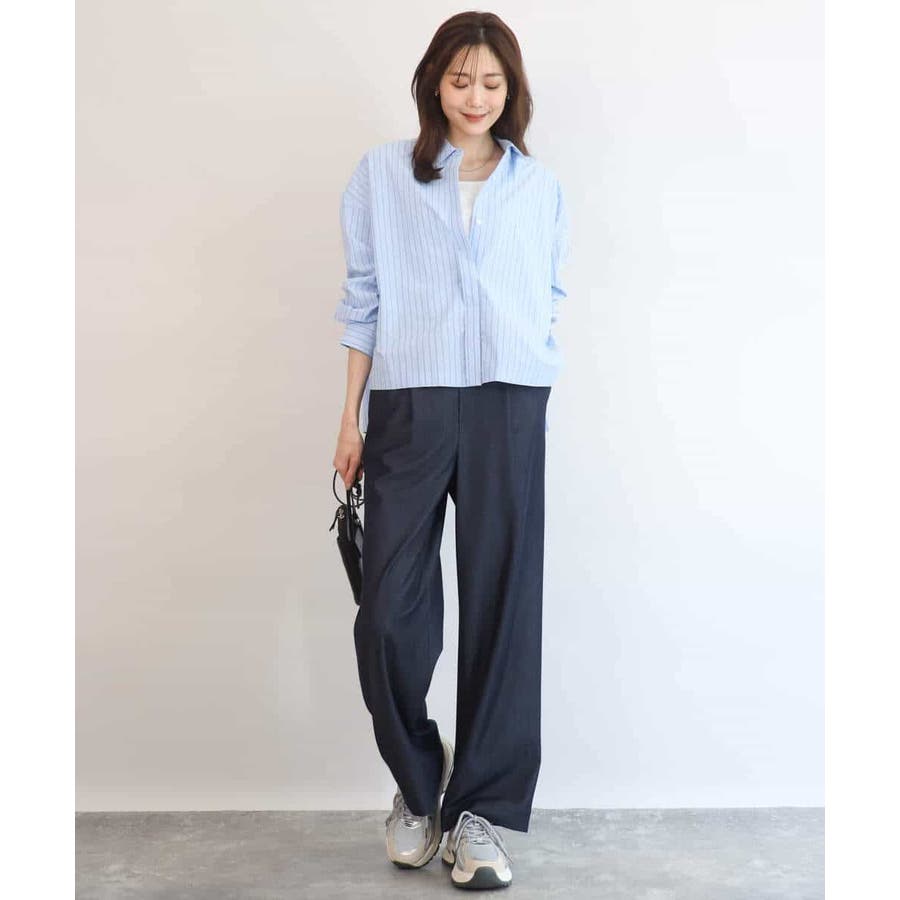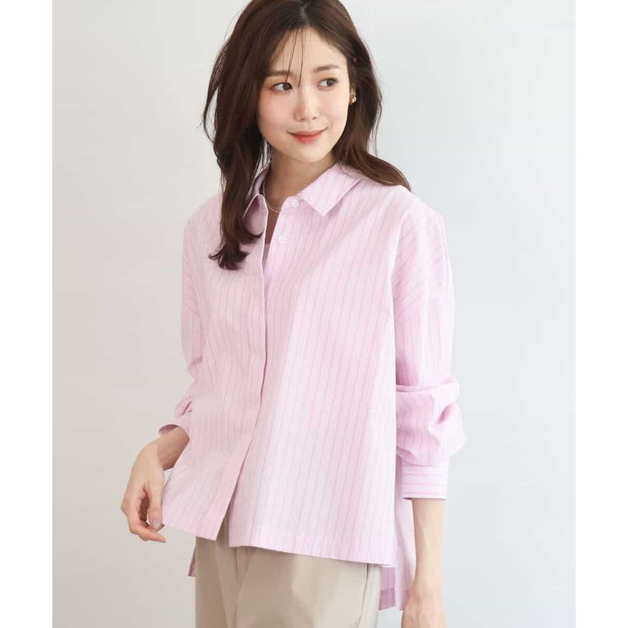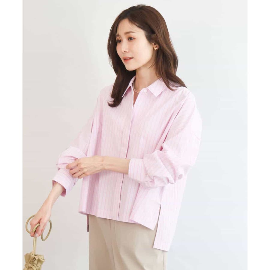 クロップドのコンパクト丈が合わせるボトムを選ばないストライプ柄シャツブラウス。シンプルなデザインは着丈に前後差を付け、こなれた印象に仕上げました。