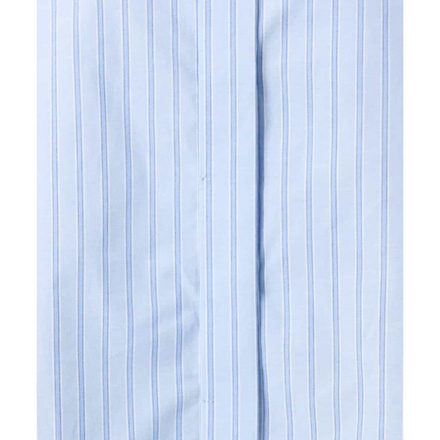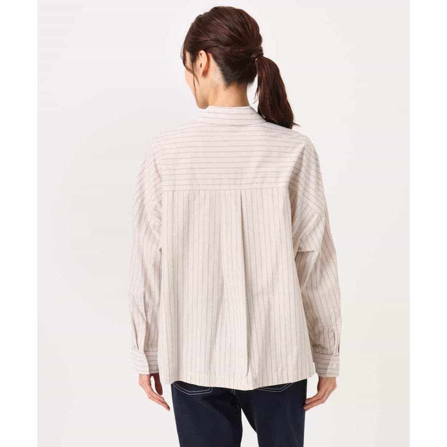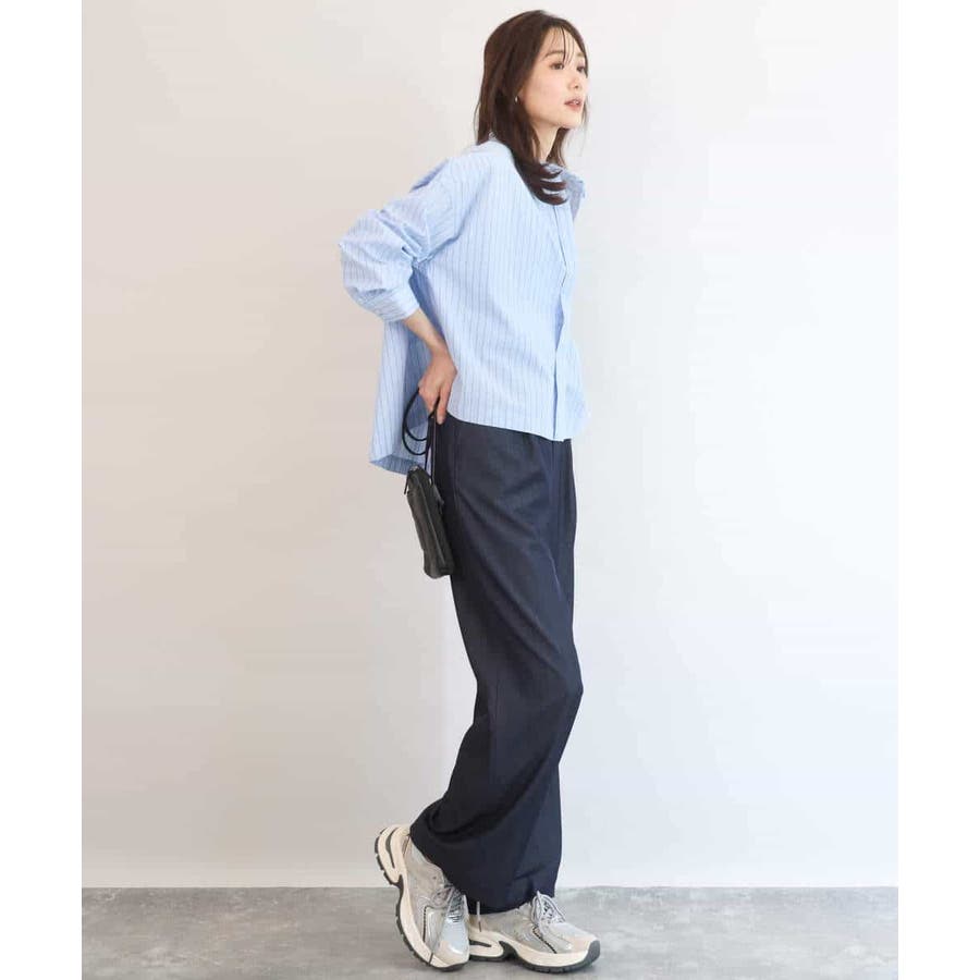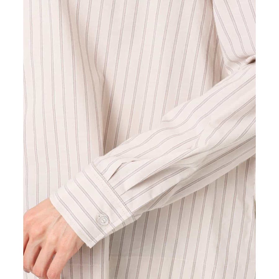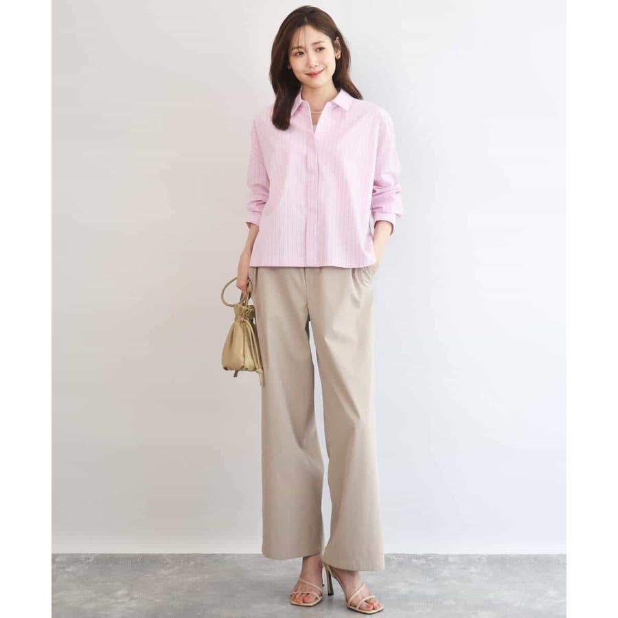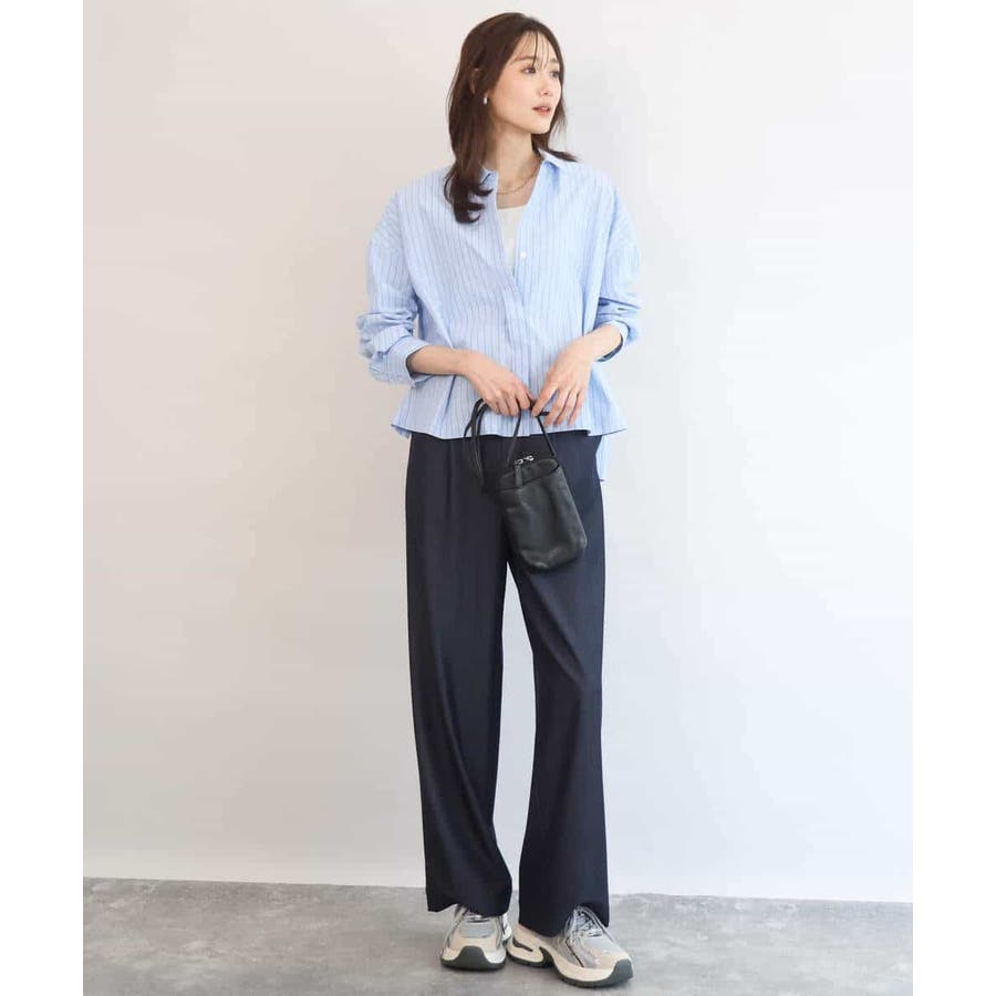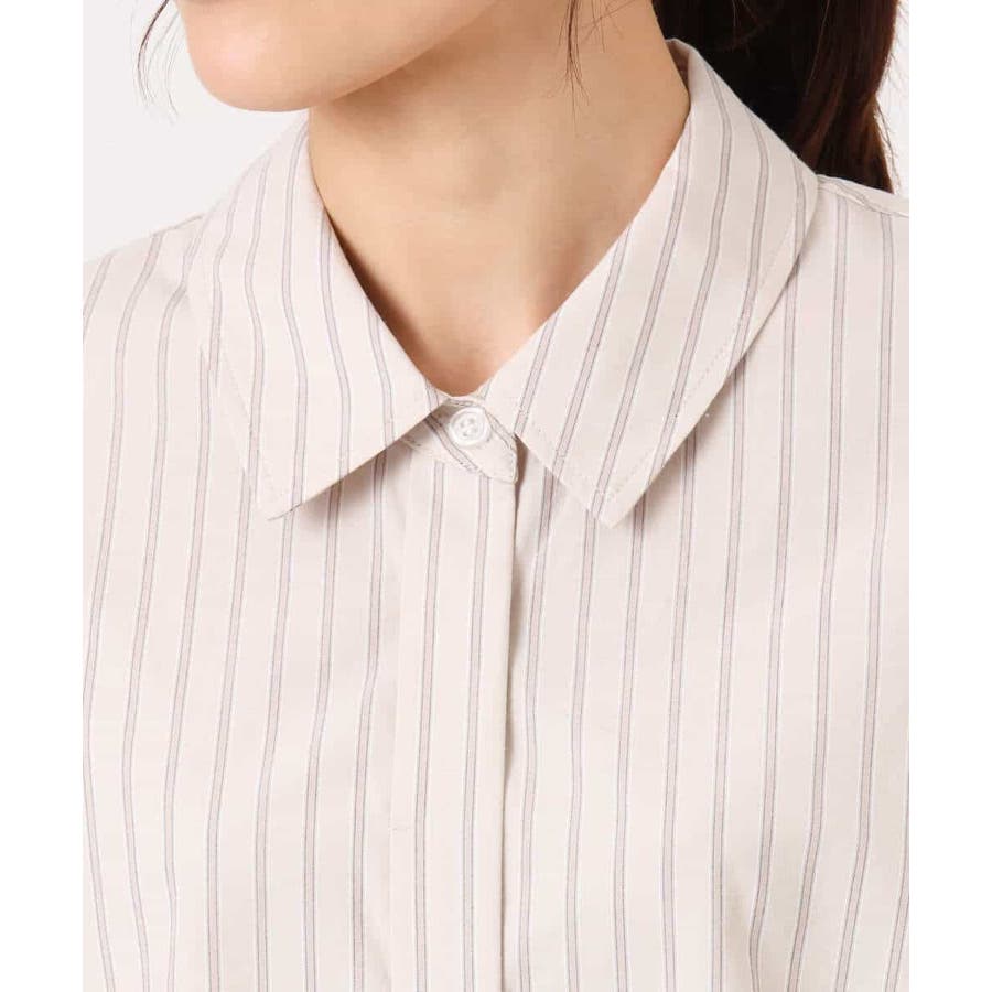 クロップドのコンパクト丈が合わせるボトムを選ばないストライプ柄シャツブラウス。シンプルなデザインは着丈に前後差を付け、こなれた印象に仕上げました。
