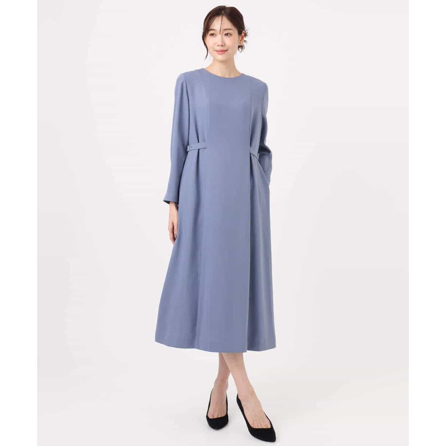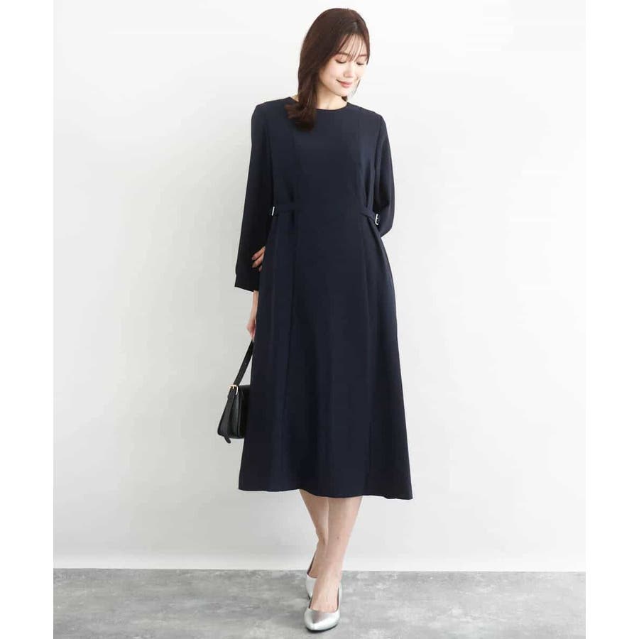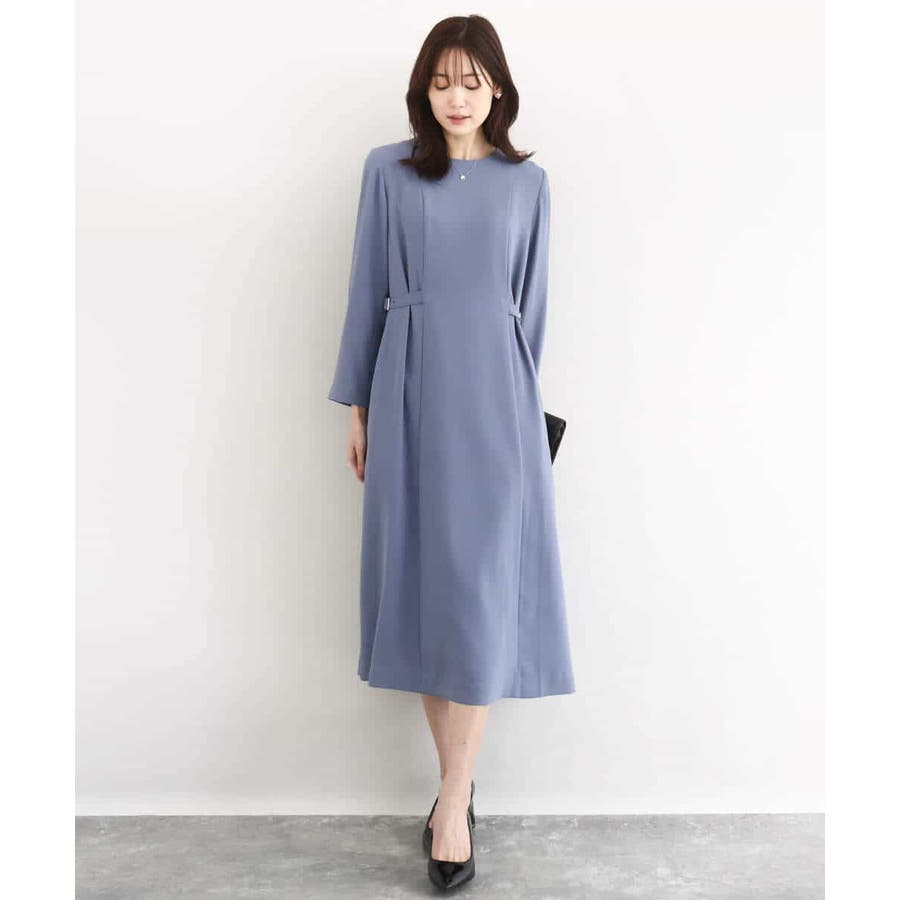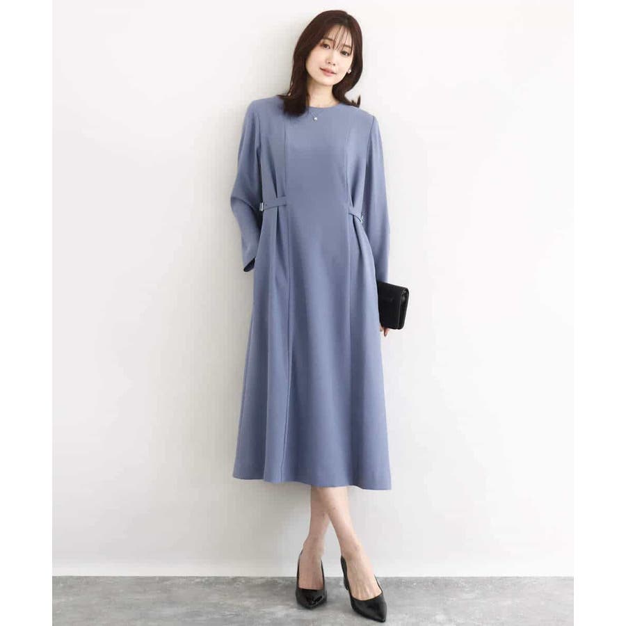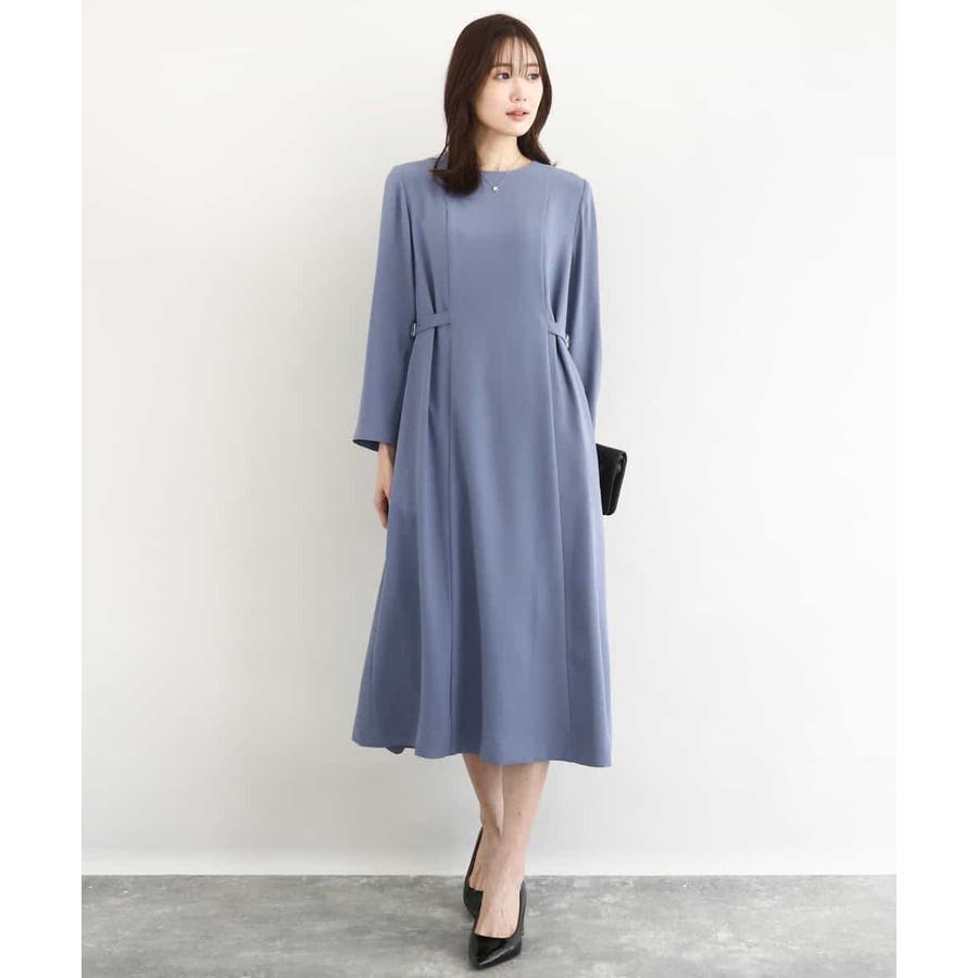 サイドのベルトデザインがアクセントのワンピース。一枚ですっきりときれい見えな印象が叶います。結婚式や二次会、パーティーシーンにもおすすめ。