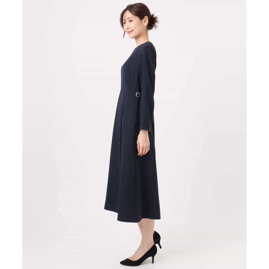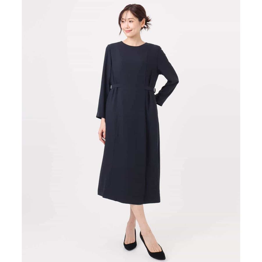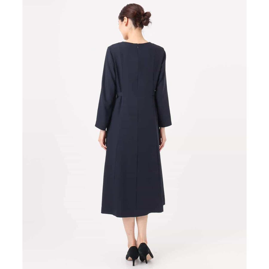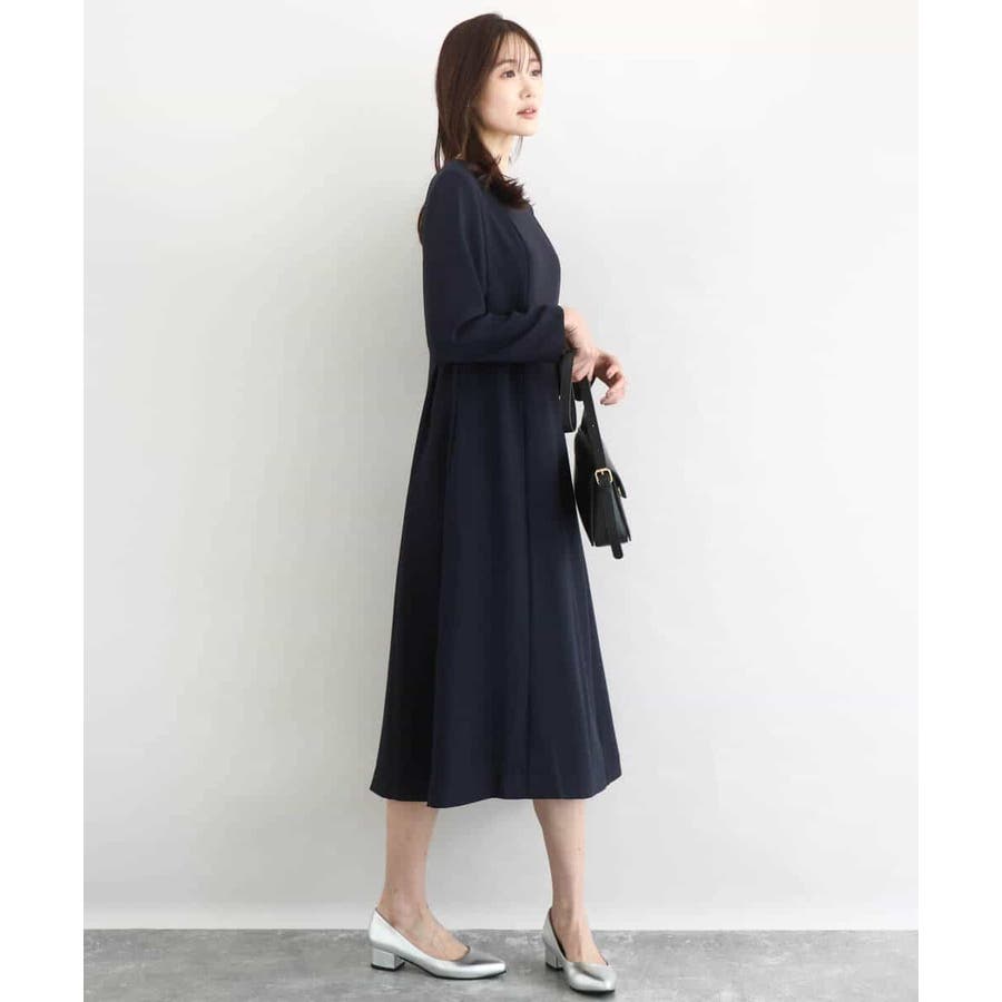 セレモニーなどのきちんとしたシーンにも好印象の膝が見えない着丈は座ったときも安心。ジャケットやコートとも相性良く着合わせられます。シンプルなデザインなので、ネックレスやブローチなど、お手持ちのアイテムで華やかさをUPさせても素敵に決まります。