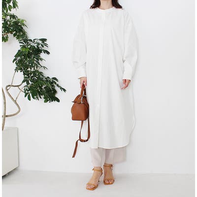 ワンピース/シャツワンピース/ノーカラー/ホワイト/ベージュ/ミント/きれいめ/カジュアル/大人カジュアル/ゆったり/シンプル/トレンド/ママ/2021SS/