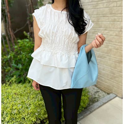 トップス ブラウス ノースリーブ シャーリング 春トップス 夏トップス ブラック ホワイト カジュアル 大人カジュアル シンプル ガーリー かわいい トレンド 韓国 韓国ファッション 春 夏