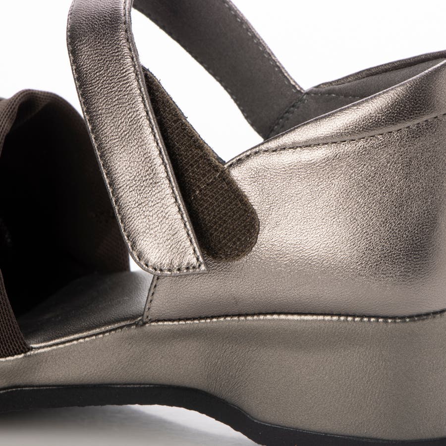 足首ストラップでしっかり固定することにより歩行が安定し、長時間履いても疲れにくい。