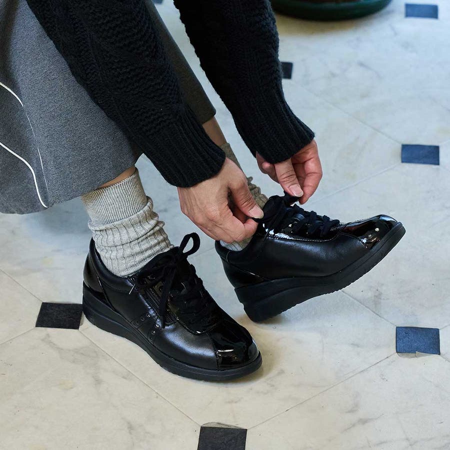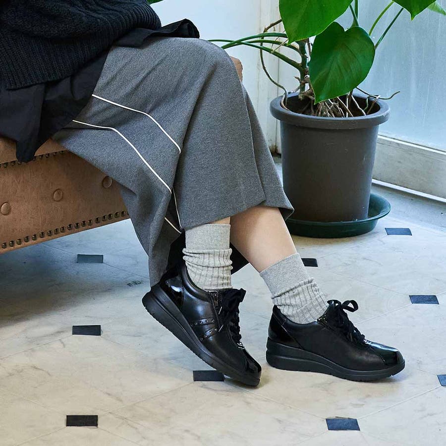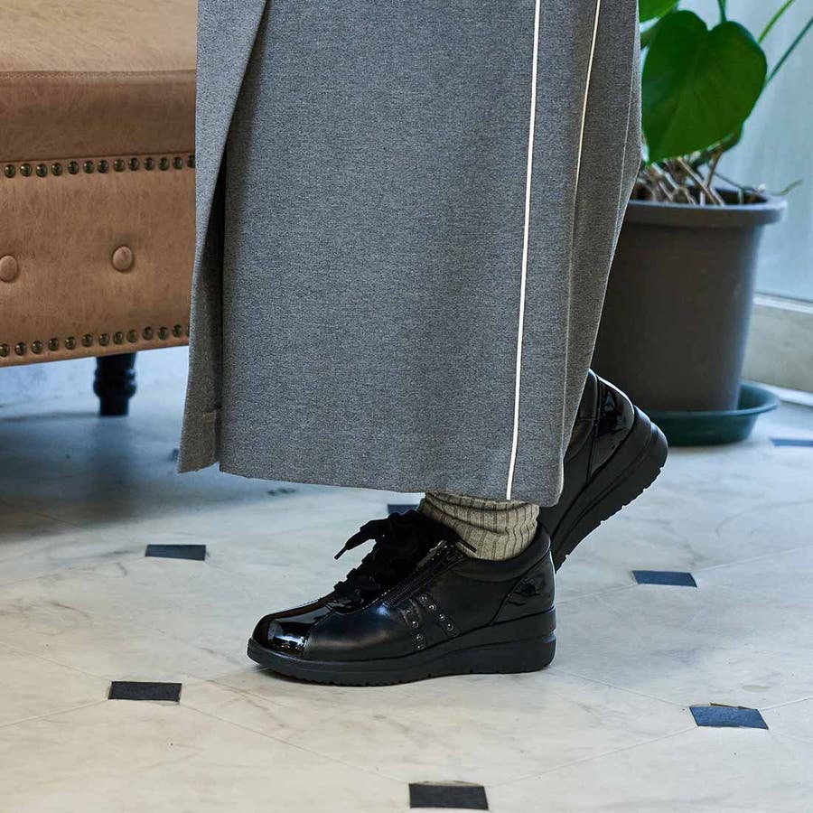 【3E】ファスナー付きヒールアップスニーカー