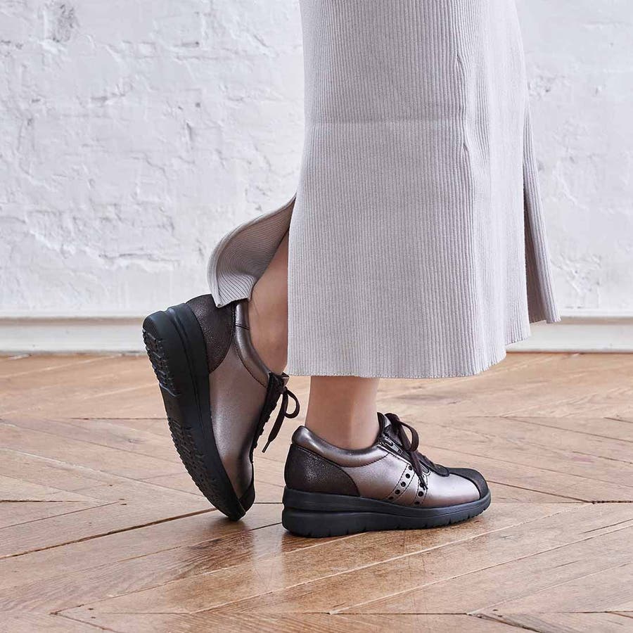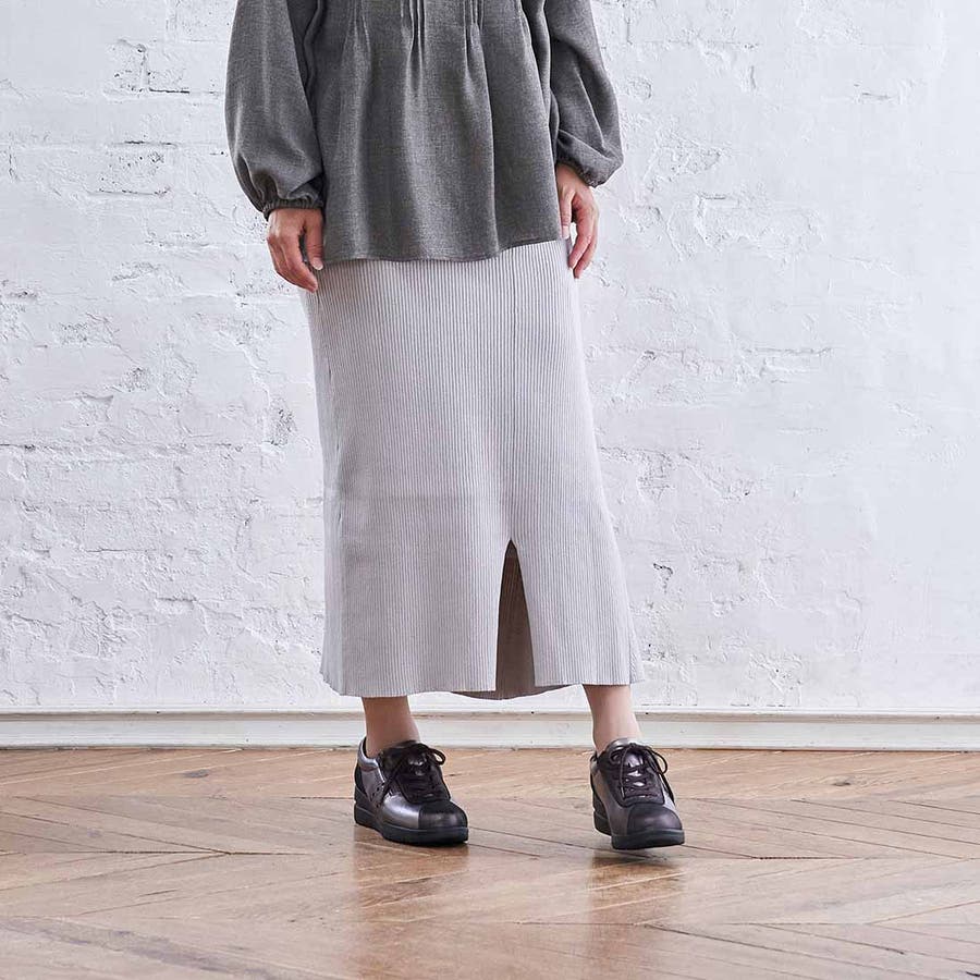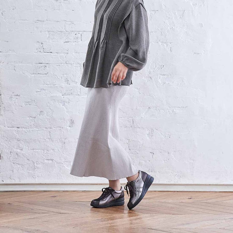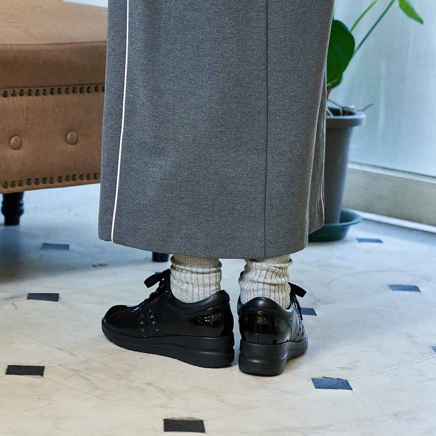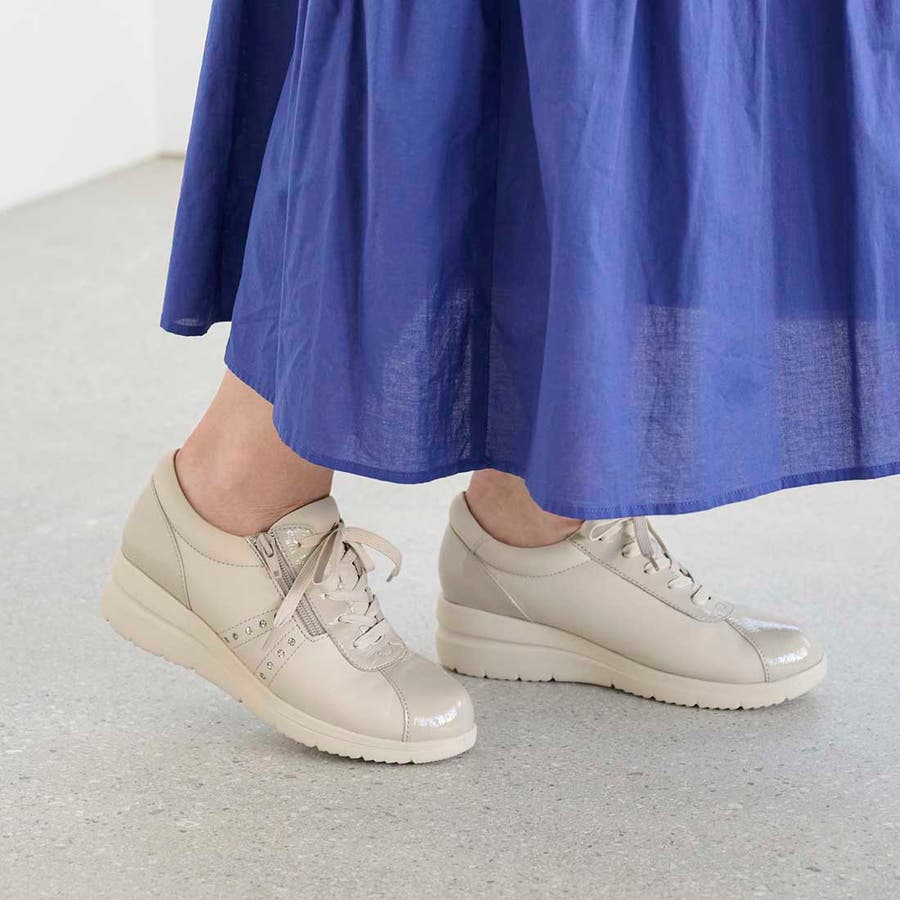 キレイ目スニーカーなのでエレガントなスタイルにもマッチ。