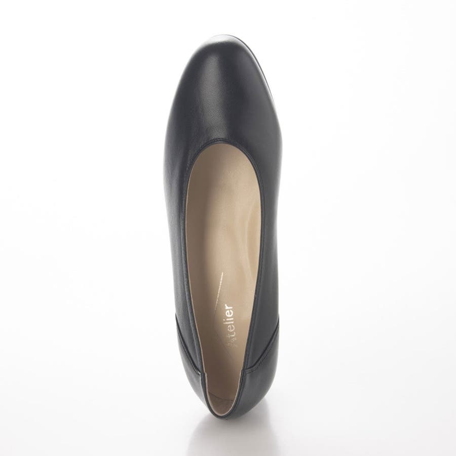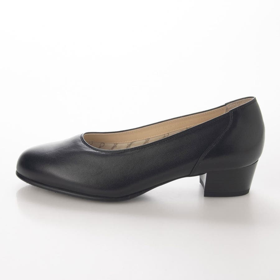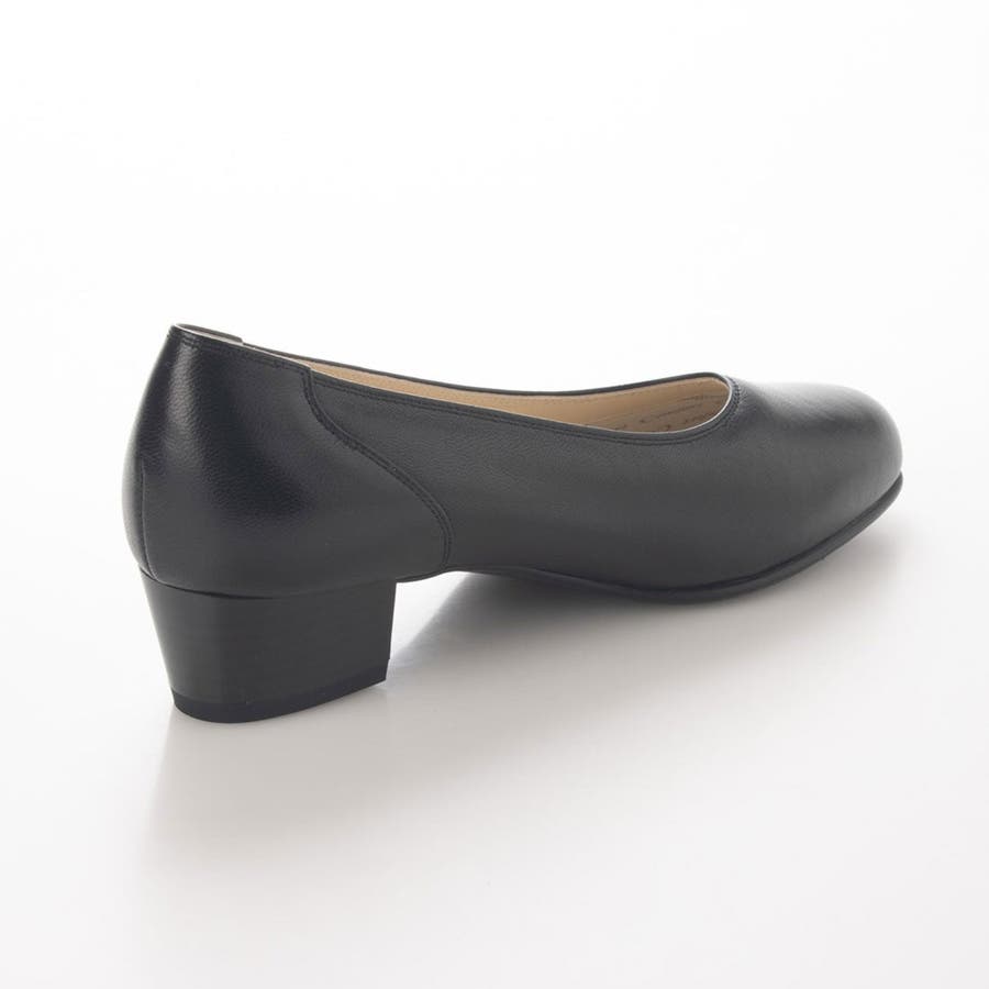 撥水加工の羊革を使用した、ゆったり4E木型のパンプスです。