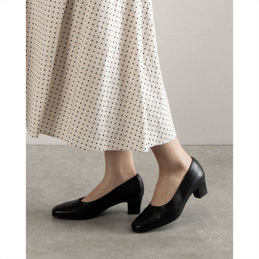 撥水加工の羊革を使用した、ゆったり3E木型のパンプスです。
