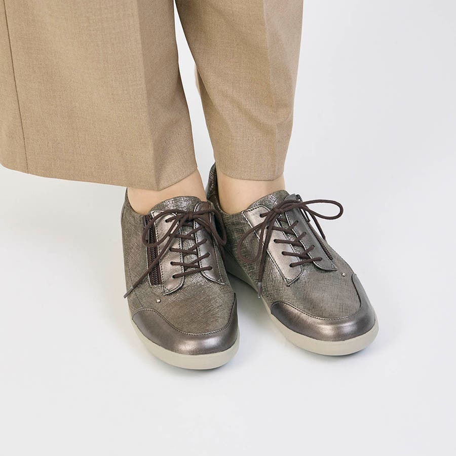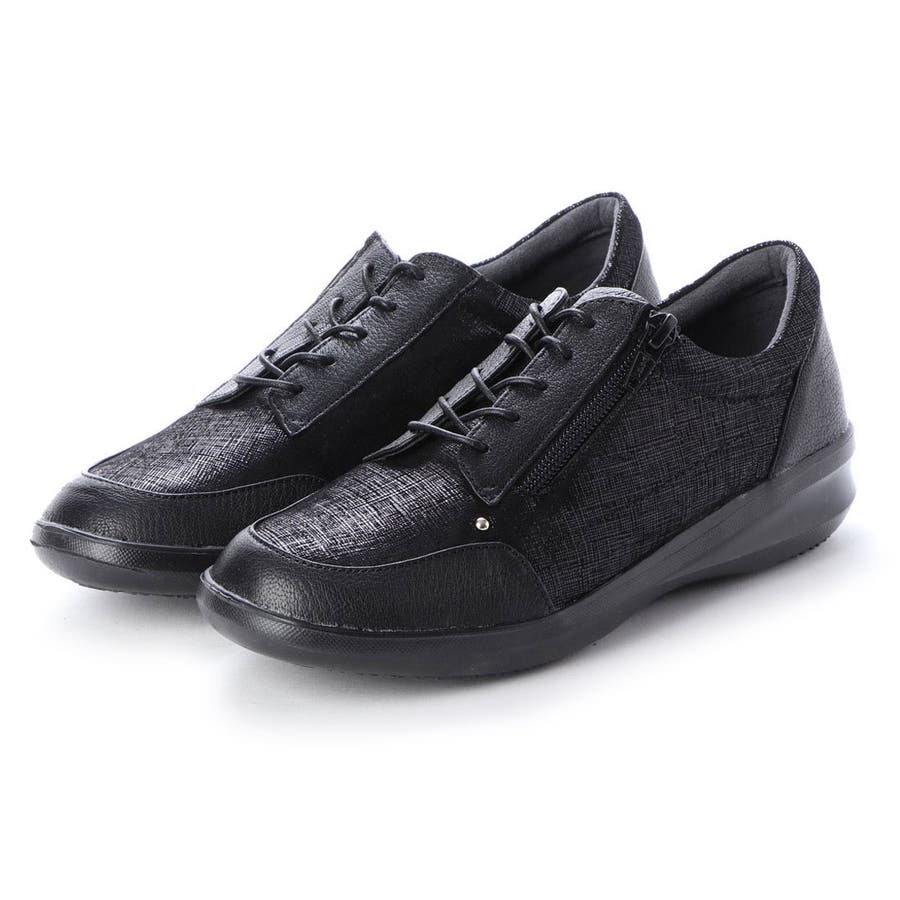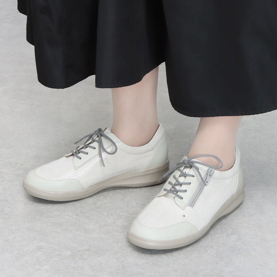 【3E】サイドファスナーレースアップスニーカー