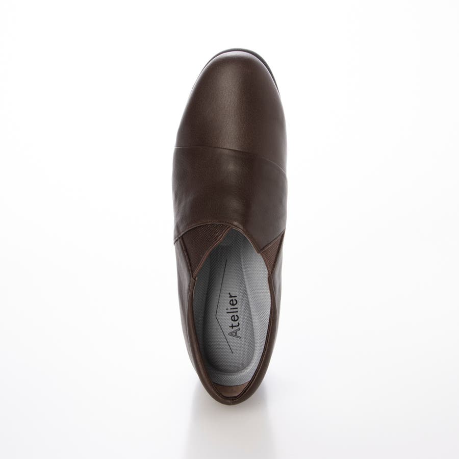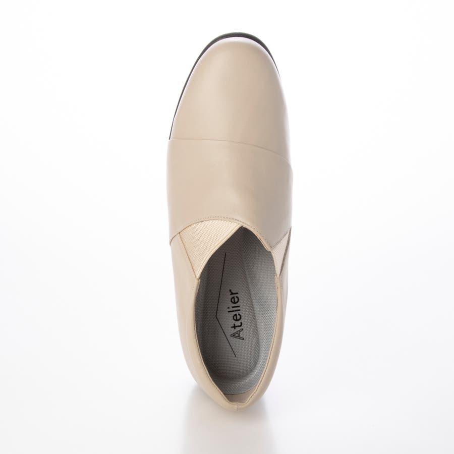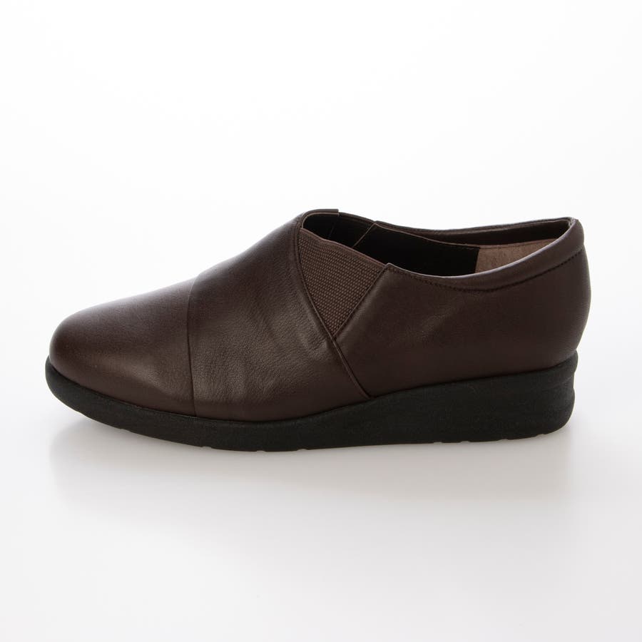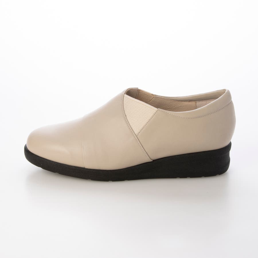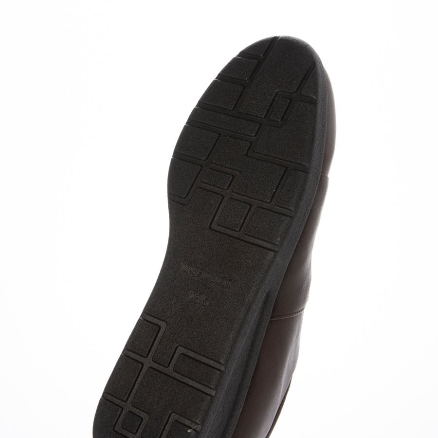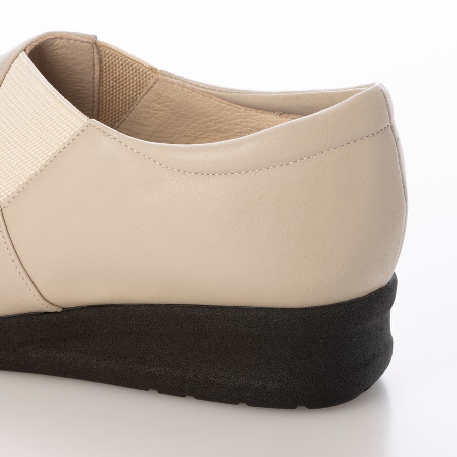 シューズとはまた違った中深のパンプス顔のアッパーラインは、通勤などのONシーンにも使いやすいデザインでボトムスを選びません。