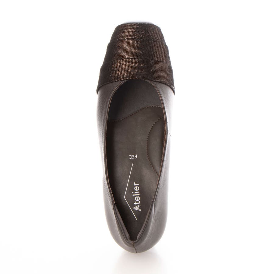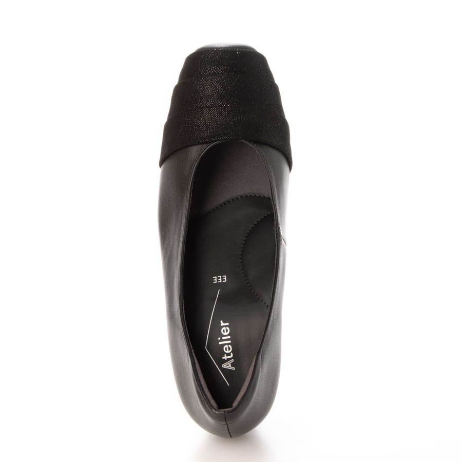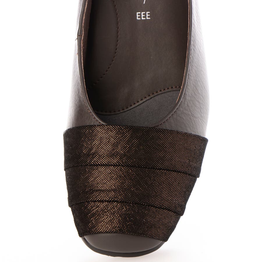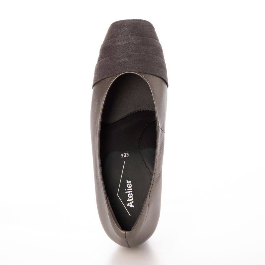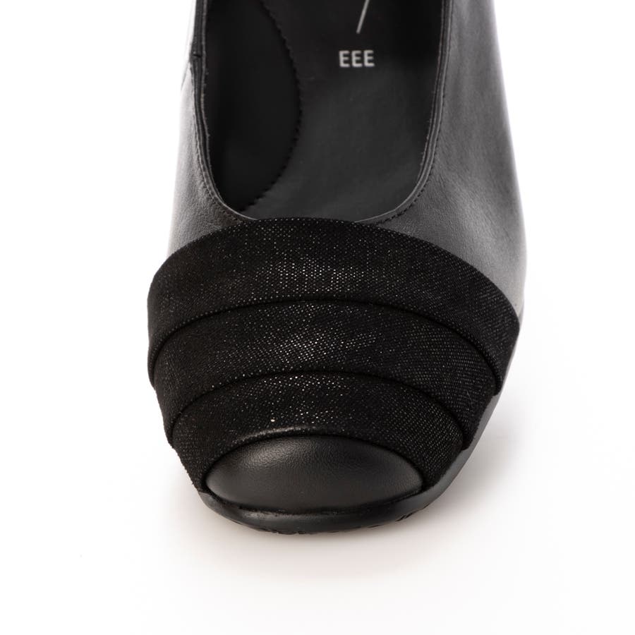 アッパーの切り替えが印象的なコンフォートパンプス。