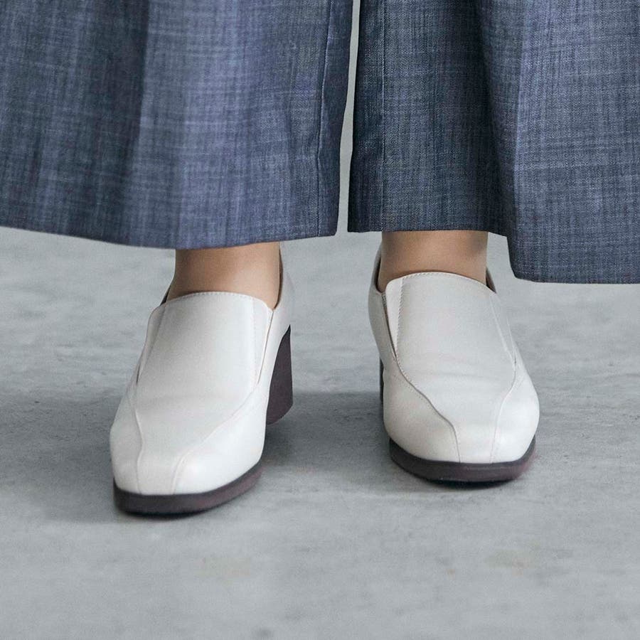 Atelierならではの軽さや足入れのソフト感は勿論、こちらはややヒールを高めに設計し、スッキリとしたスタイリッシュフォルムの1足。