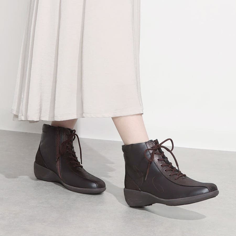 #ウエッジソール #ブーツ #紐 #編み上げ #痛くない #履きやすい #クッション #軽い #楽 #華やか #おしゃれ #オシャレ #コンフォート #ウォーキングシューズ #外反母趾 #旅行 #行楽 #靴