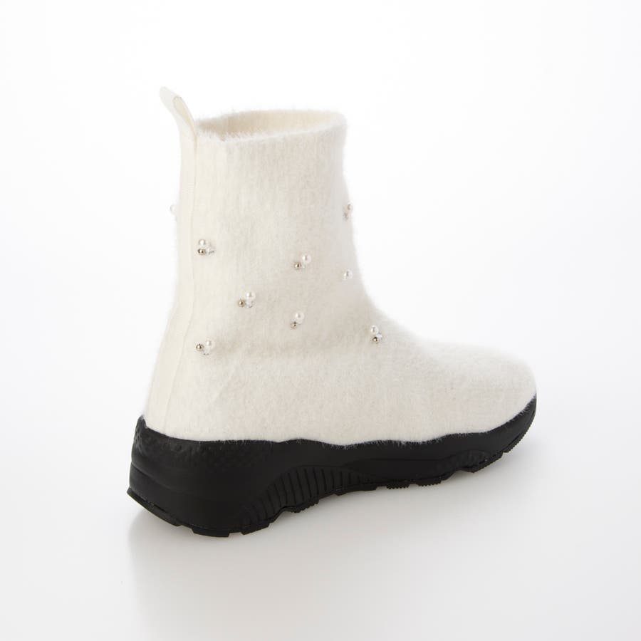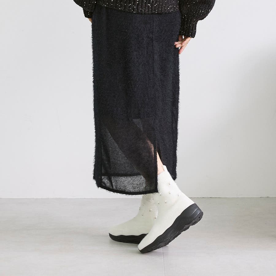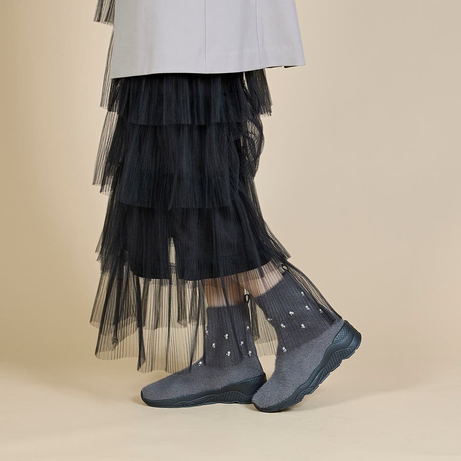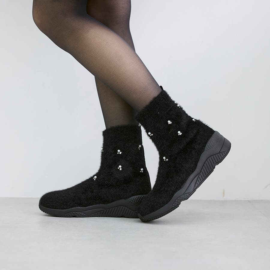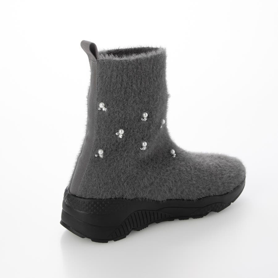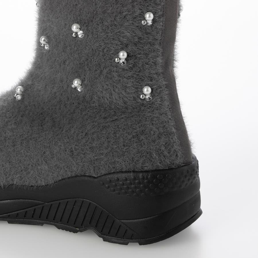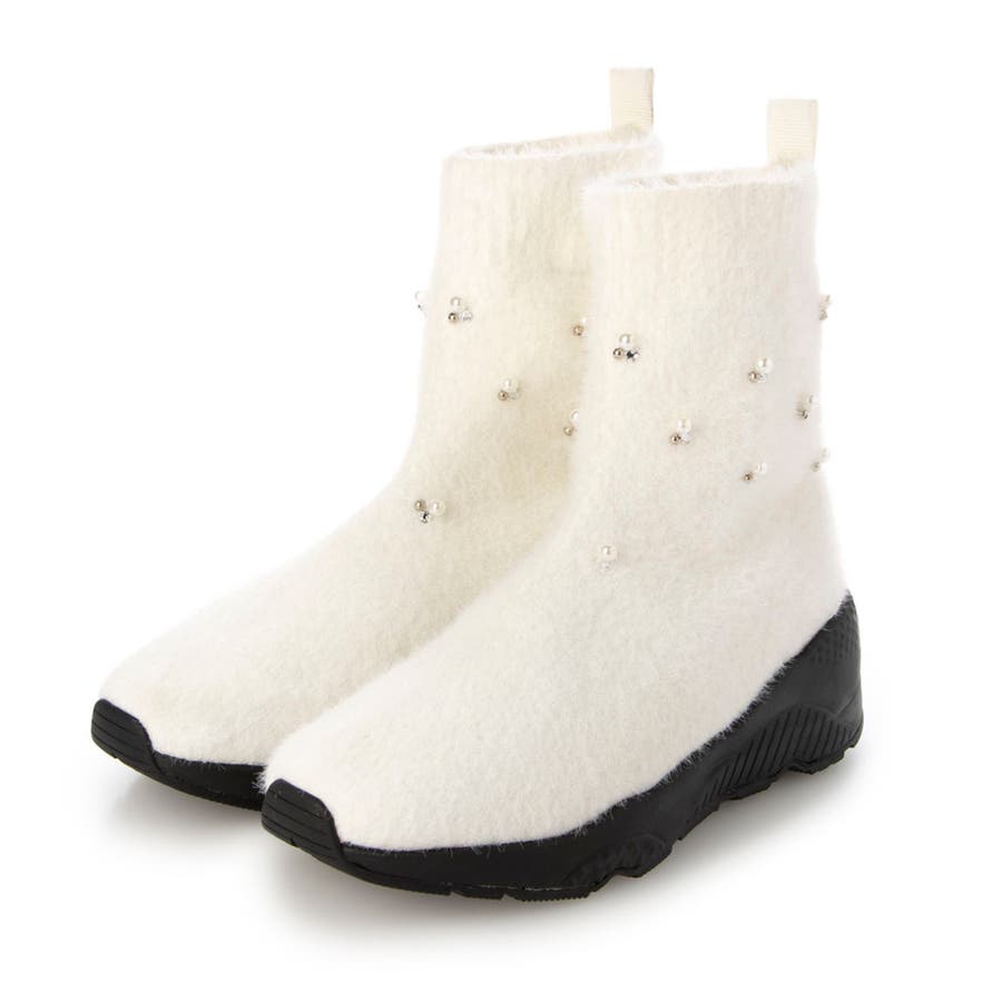 上品なビジューパーツが目を惹くニットブーツ。