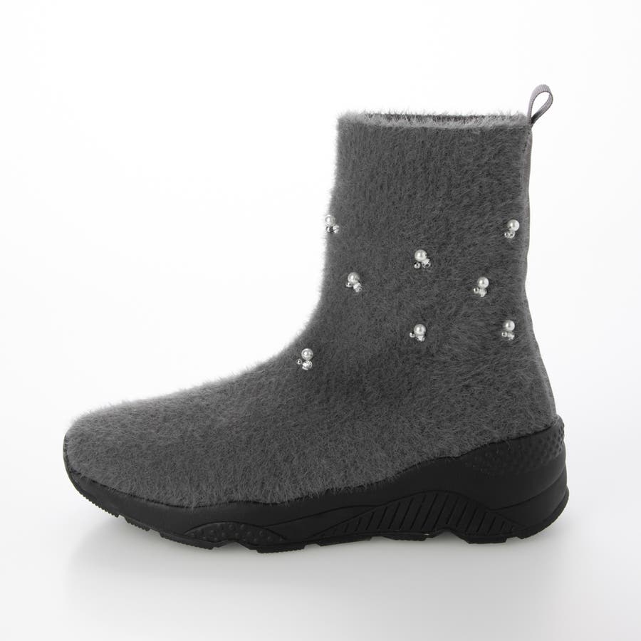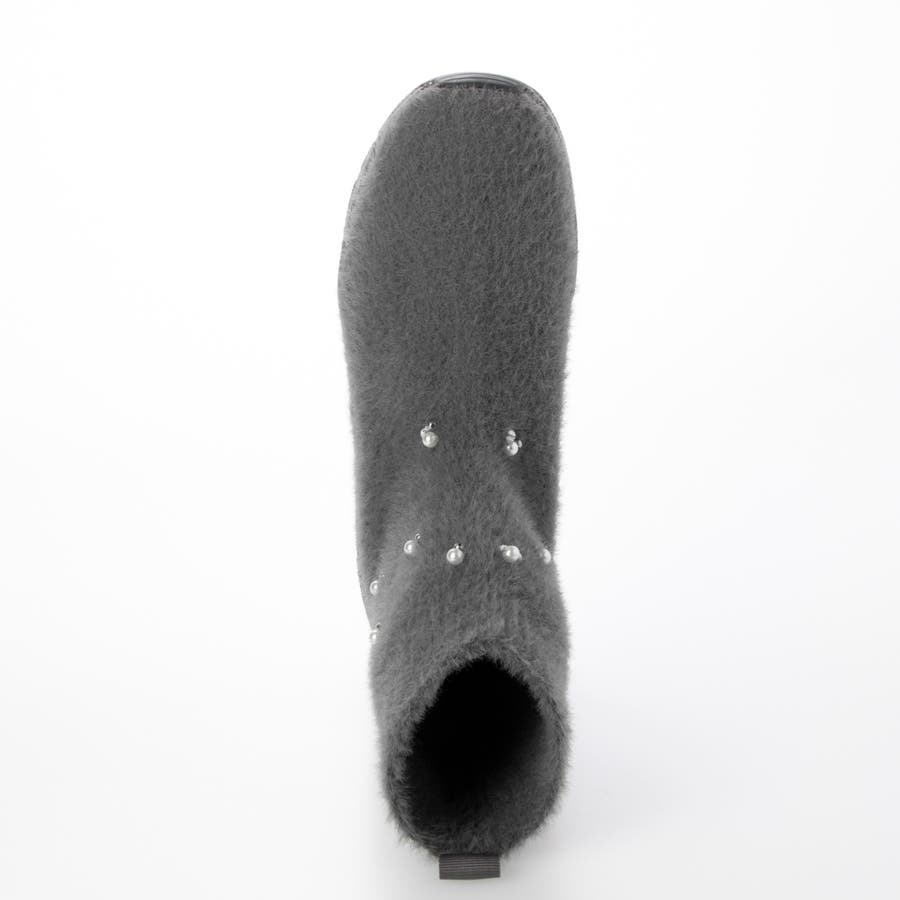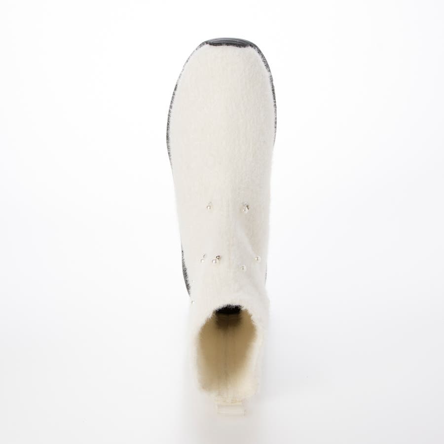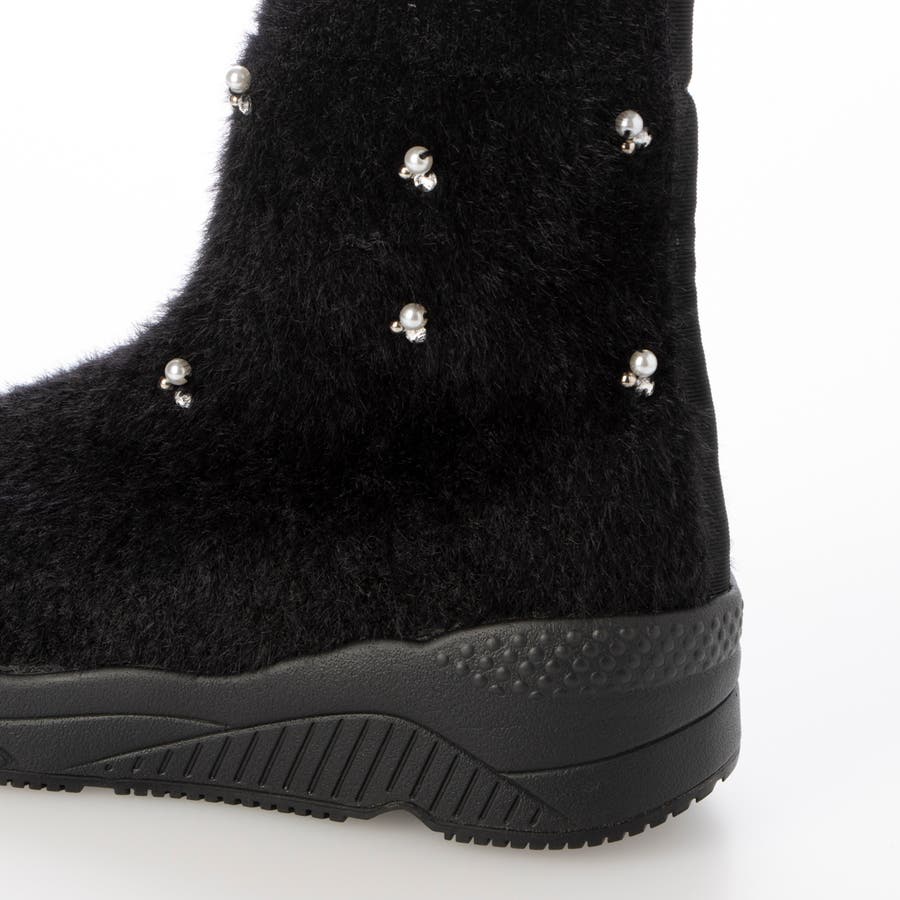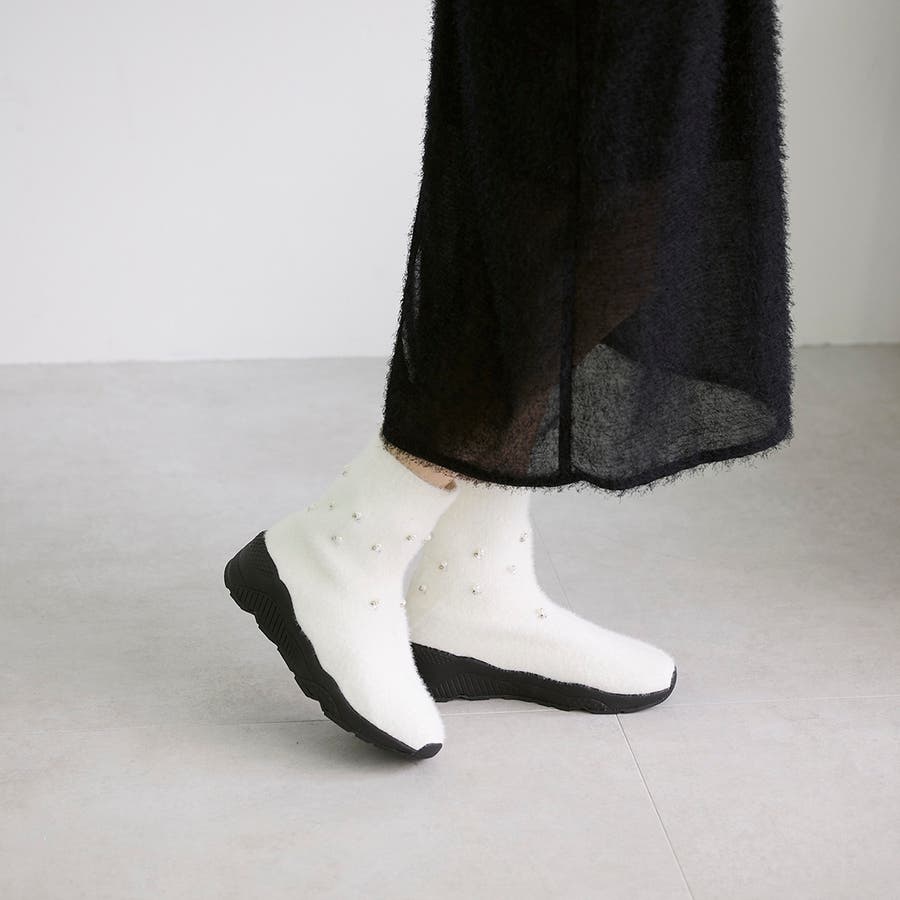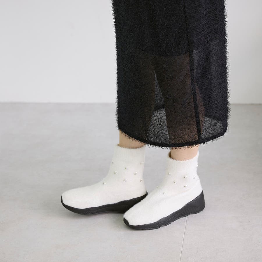 上品なビジューパーツが目を惹くニットブーツ。