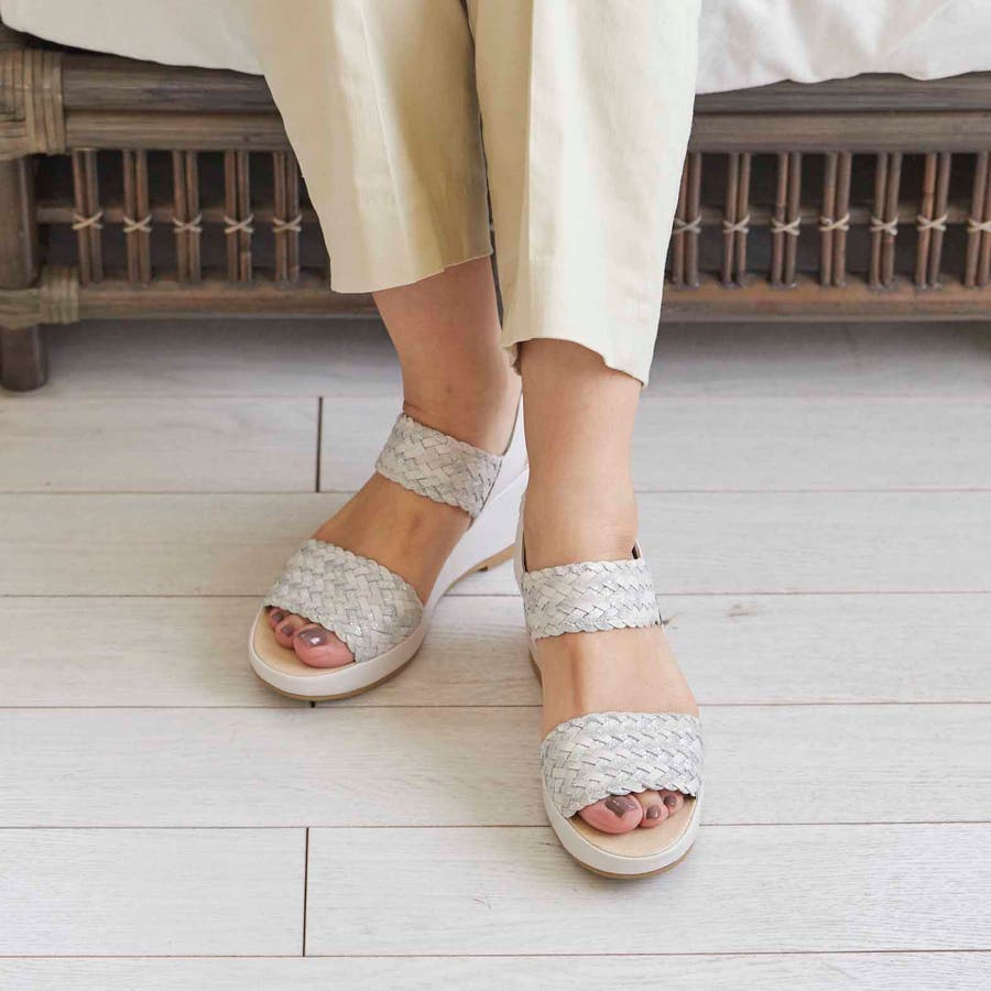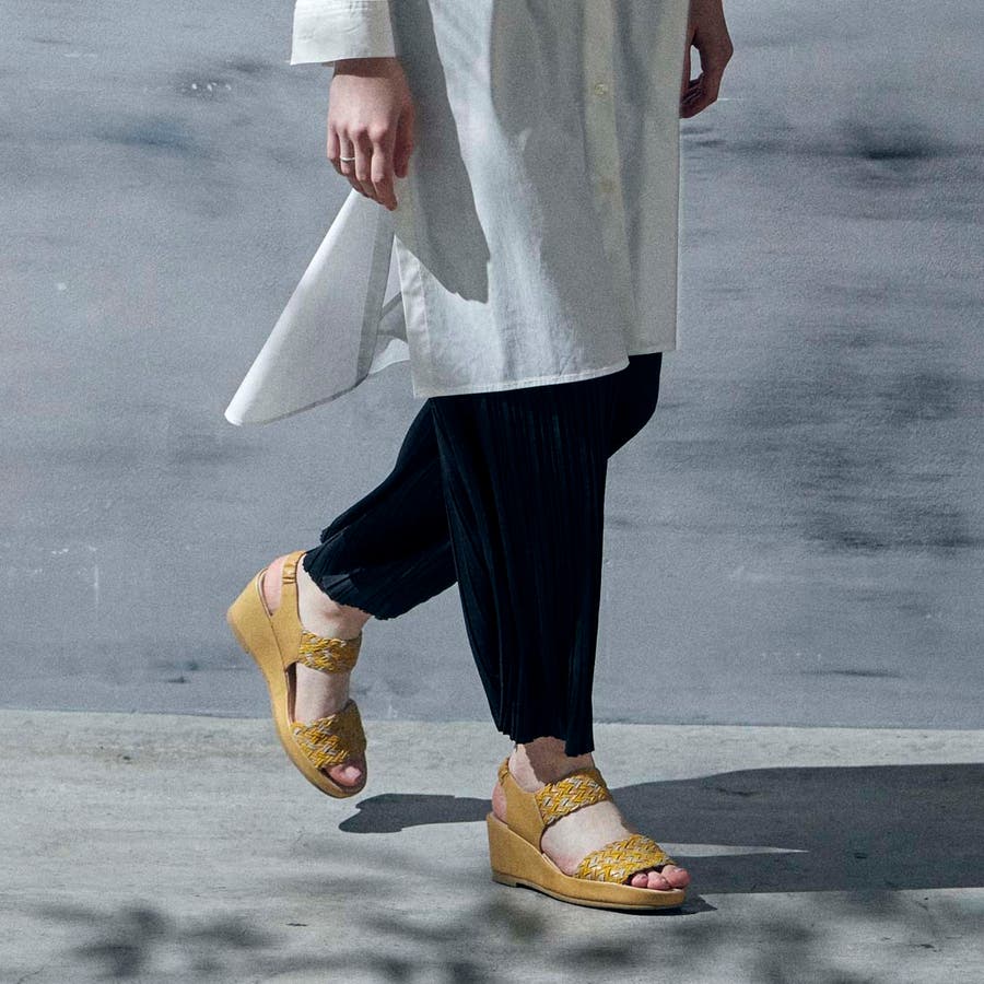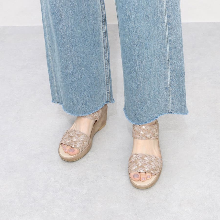 抜け感漂うヌーディーなデザインはリゾートシーンに映えるのはもちろん、タウンユースでもコーディネートしやすい優秀な一足。